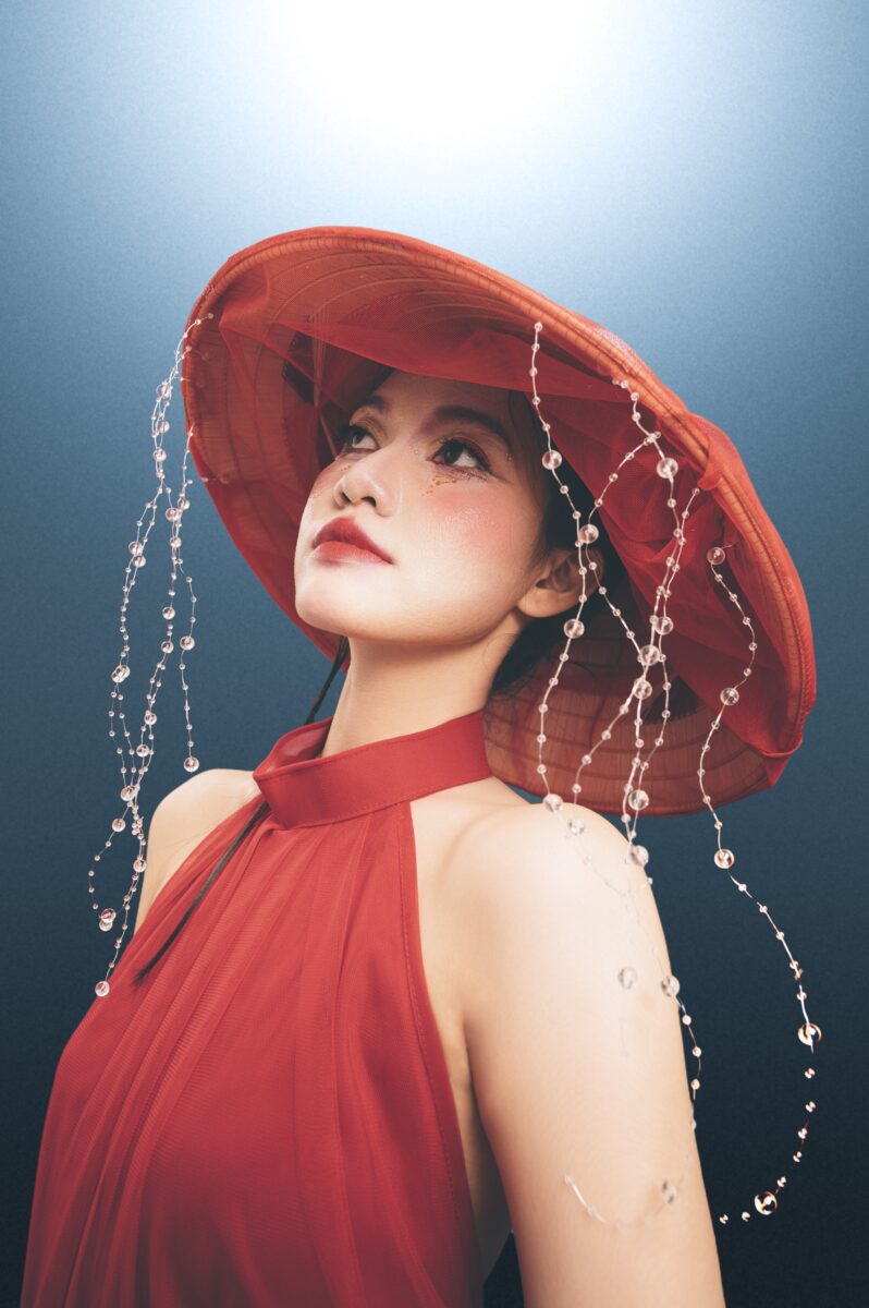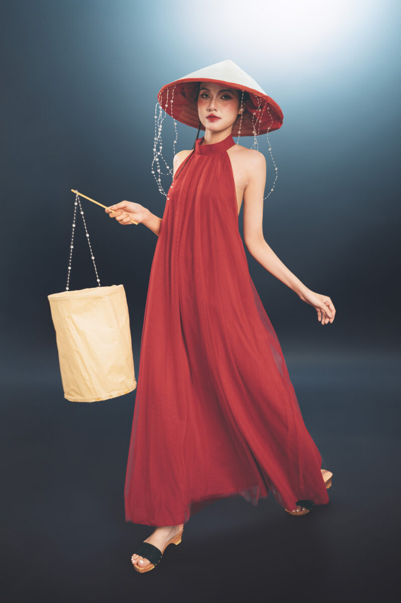 Nhằm đưa tinh thần ấy tiếp cận đại chúng, tác phẩm bao gồm chiếc nón lá được thiết kế tinh xảo thể hiện sự giao thoa giữa nét duyên dáng truyền thống và hơi thở đương đại, bên cạnh đó không thể thiếu chiếc lồng đèn tượng trưng cho ánh sáng hồn nhiên của tuổi thơ, và cuối cùng là bộ trang phục áo yếm đi kèm chiếc khăn voan đỏ nhằm tôn vinh vẻ đẹp đằm thắm mà vẫn nồng nàn của người thiếu nữ Việt Nam.