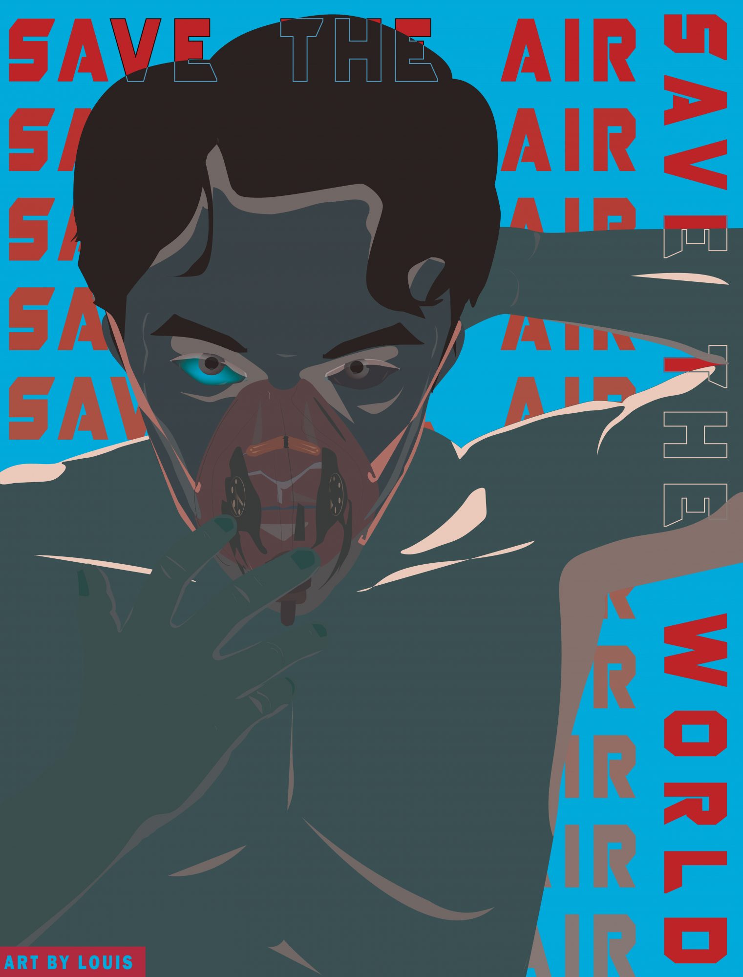 Bức vẽ thứ 2 là bức tự hoạ chính mình với chiếc mặt nạ oxy , để nâng cao ý thức của mọi người đồng thời cảnh báo trước những nguy hiểm , nếu chúng ta coi thường tình trạng hiện nay !