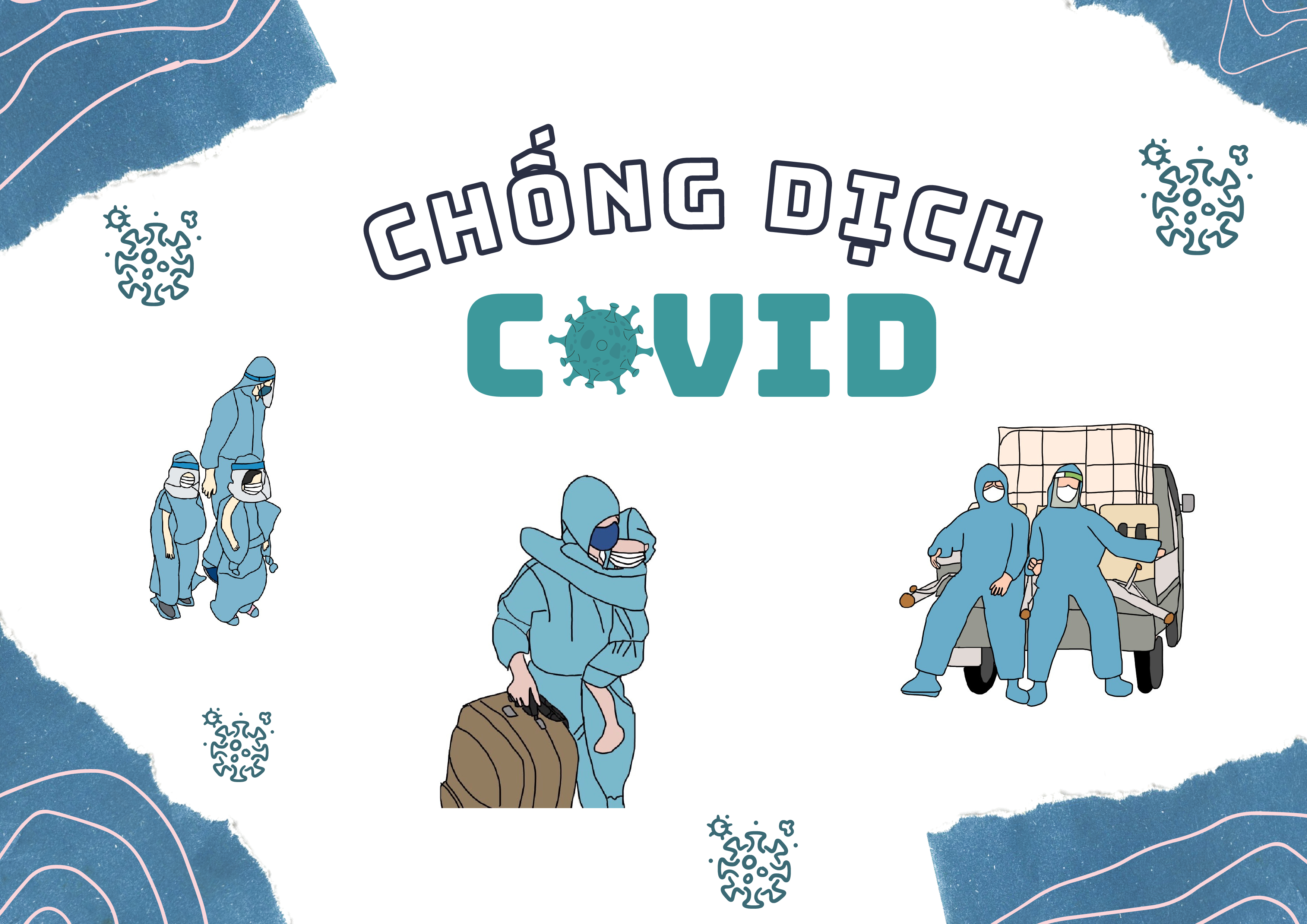Một thiết kế muốn gửi lời cảm ơn và thông điệp mạnh mẽ “Chống dịch Covid”. Lời cảm ơn đến tất cả những anh hùng áo xanh, họ đã bỏ sự lo lắng nhỡ nhiễm bệnh để lao vào vùng dịch, họ bất chấp mặc bộ đồ kín chặt để đảm bảo an toàn, họ gác lại gia đình để đi bảo vệ đất nước,… còn rất nhiều điều họ để sang một bên để đứng dậy để đi và chống dịch đem lại sự yên tâm đến với người dân. Trong vùng dịch, tất cả ngành nghề ngay cả những bé nhỏ cũng đang chấp hành cách ly tốt thì không có gì quá khó với chúng ta bên ngoài ở đâu cứ ở yên đó. Thông điệp em muốn gửi đến hãy đoàn kết đẩy lùi dịch rồi Việt Nam ta sẽ bình yên, mọi điều sẽ trở lại tốt đẹp hơn.