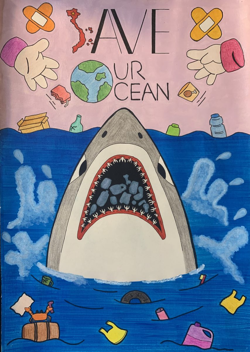 Đây là một tác phẩm nói về sự ô nhiễm ở đại dương, rác thải tràn lan ở cả trên bề mặt và trong đại dương. Con cá mập đại diện cho một trong những loài động vật nguy hiểm nhất ở đại dương nhưng bây giờ nó cũng bị ảnh hưởng bởi rác thải do con người tạo ra và hàm răng được coi là bộ phận chủ lực cũng dần bị biến dạng thành những chiếc dĩa nhựa. Điều đặc biệt là những bàn tay của trẻ em đang vứt rác xuống miệng con cá mập. Nếu ta không giáo dục những đứa trẻ từ nhỏ thì nó sẽ không có ý thức về việc bảo vệ môi trường. Đó vừa là nguyên nhân vừa là kết quả sau này.