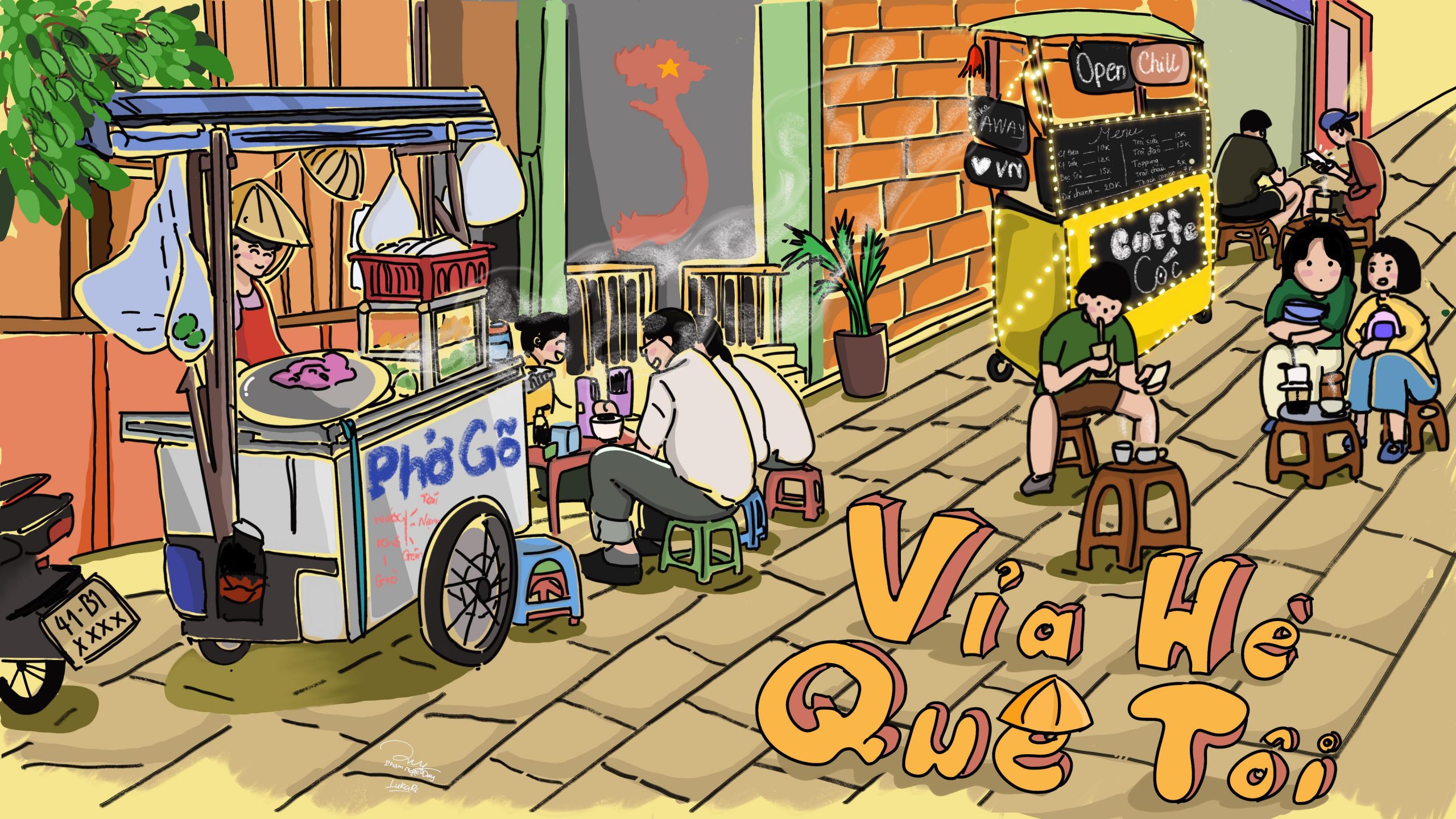 5 rưỡi, 6 giờ chiều, Vỉa Hè ấy, chiếc xe ấy, cái ghế nhựa, cái bàn thô ấy, vẻ đẹp ấy, mùi hương ấy , cái vị thân thương ấy là nơi mà tôi cùng lũ bạn lớn lên. PHỞ hương vị đặc biệt đã mang tên tuổi Việt Nam ta vươn xa ra thế giới, dù có đi xa đến đâu khi mùi hương ấy bốc lên đều để lại trong mỗi con người Việt Nam ta không ít bồi hồi. Mùi hoa hồi được nấu cùng nước dùng thơm ngào ngạt, vị xương hầm, bò tái ngọt thanh của nước dùng sau những giờ tan làm, tan học mệt mỏi, khoác vai nhau ra ngồi quán Phở Gõ đầu ngõ húp xì xụp mọi mệt mỏi đều tan biến. Hay những cuộc hẹn nhau ra làm 1 ly cà phê, đứa cà phê đen, đứa ly bạc xỉu ngồi xuống nhâm nhi, tán gẫu cùng nhau đủ thứ chuyện trên trời. Giải sầu, giải tỏa bao buồn bực uất ức từ sếp. Một chút đăng đắng hòa với ngọt béo của sữa đặc kích thích rồi lại xoa dịu tinh thần mệt mỏi của chính bản thân. Mùi hương ấy, mùi của những hạt ca phê được rang cháy thơm lan tỏa cả 1 không gian. PHỞ GÕ, CAFÉ CÓC – 2 cái hương, 2 cái vị ấy đã tạo nên một vẻ đẹp mà có lẽ khó có nơi nào mà bạn có thể thấy được và chúng chỉ có tại VỈA HÈ VIỆT NAM.