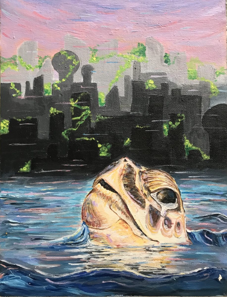 Hình ảnh giọt nước mắt lấy cảm hứng từ bộ phim Inside out (2015), miêu tả cảm xúc xen lẫn giữa 2 cực xúc cảm hoàn toàn đối ngược nhau: Hạnh phúc và Buồn bã của chú rùa trong tác phẩm. Nhân vật chính trong bức tranh là chú rùa cô độc Cloe nay đã hơn trăm tuổi. Chú giành cả cuộc đời để chu du tứ hải cùng đồng bạn, nhưng lại lần lượt nhìn từng người từng người một ra đi vì không thích nghi được với sự thay đổi chóng mặt của môi trường (hiện tượng nóng lên toàn cầu, sự suy giảm của các bãi san hô, ô nhiễm tiếng ồn, ô nhiễm “trắng”,…). Ngay tại thời khắc chạng vạng, cũng là phút giây mà Cloe thấy cô độc nhất. Chú đã KHÓC. Tưởng niệm và xót thương cho những đồng bạn đã ra đi vĩnh viễn. Buồn tủi khi bản thân chỉ còn một mình. Nhưng đồng thời Cloe cũng rơi những giọt nước mắt của HẠNH PHÚC. Chú từng lựa chọn sống tiếp những chuỗi ngày cô đơn dài đằng đẵng, níu lấy một chú niềm tin nhỏ nhoi ở loài người. Và chú thấy được hy vọng đó! Nơi xa phía sau những tòa nhà cao tầng là những bóng cây dần lên lỏi vào thành thị, kiên cường trụ vững. Đó là nỗ lực không quản nắng mưa của các chiến sĩ công an canh bắt những kẻ trộm trứng bất hợp pháp, là những đêm dài không ngủ của các cô chú tại viện bảo tồn, canh và hỗ trợ ấp nở trứng rùa biển, là các ngư dân tốt bụng giúp giải cứu những chú rùa biển mắc kẹt trong rác thải, là pháp luật nghiêm minh trừng trị những kẻ vi phạm.
