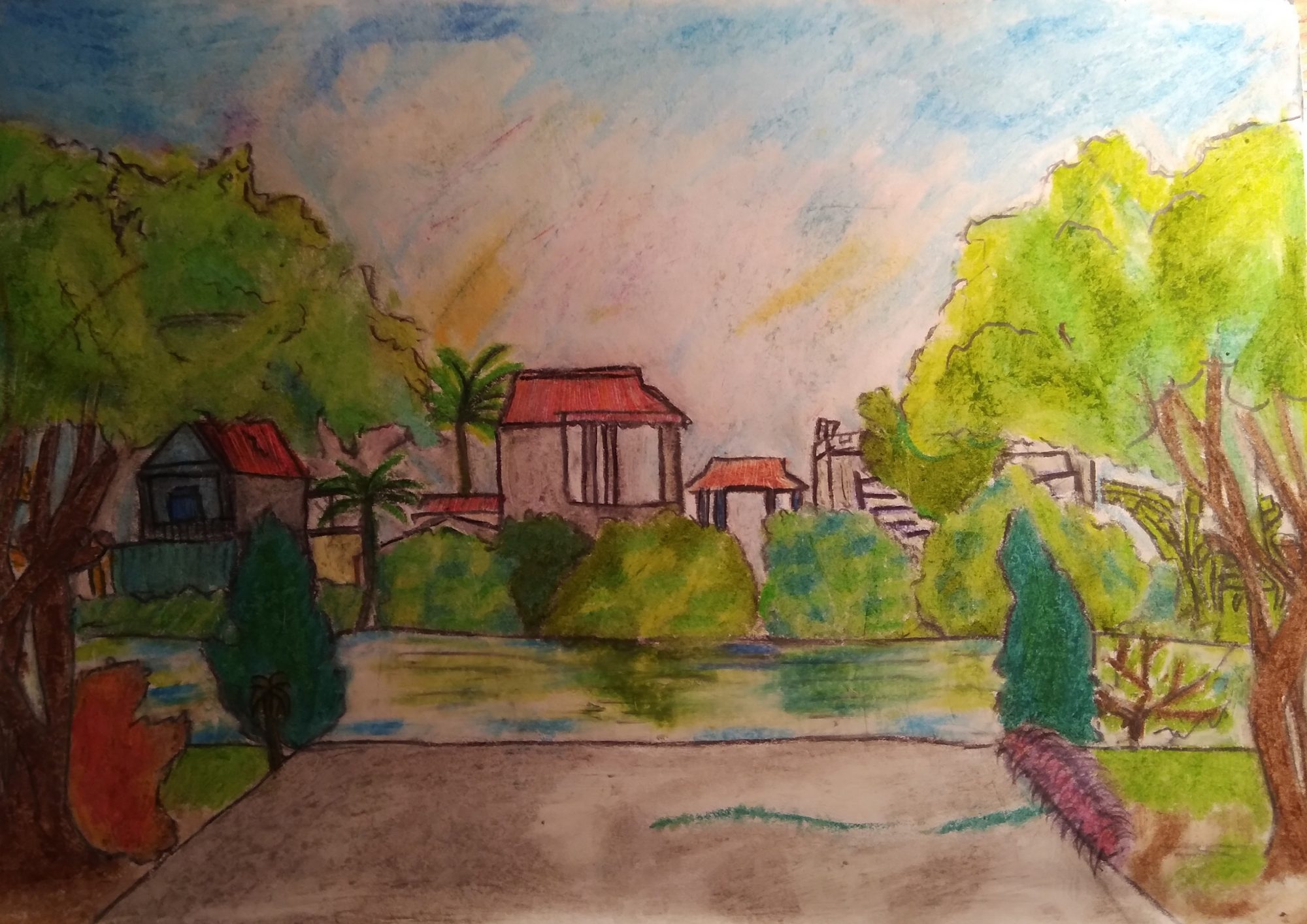 Một cái ao, mấy cái cây, vài ngôi nhà, có lẽ chẳng có gì đặc biệt với mọi người nhưng đối với em nó là cả bầu trời kí ức. Quả thật, thiên nhiên luôn mang lại cho chúng ta cái cảm giác ấm áp, được bảo vệ. Đứng trước nó, lòng bỗng nhẹ nhàng, thoải mái đến kì lạ. Nhưng nó lại bị con người hủy hoại một cách vô tình hay cố ý nào đó. Chúng ta muốn bóng mát nhưng lại chẳng muốn trồng cây. Chúng ta muốn môi trường sạch đẹp nhưng lại chẳng muốn dọn rác. Thôi, cái quan trọng là ý thức mỗi người, hãy bảo vệ lấy cái môi trường, thiên nhiên xung quanh chúng ta và coi chúng là bạn mình đó.