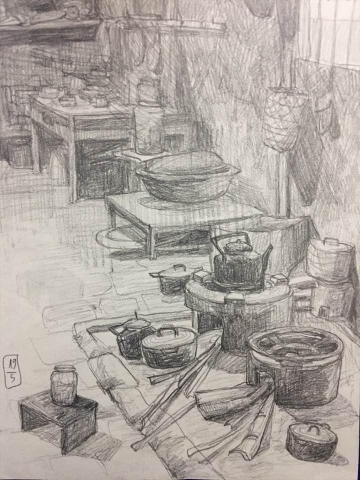 Tôi đến đó vào những tháng ngày hè, khi đó họ mới gặt lúa và bắt đầu trồng ngô. Vì đang trong kì thực tập, hàng ngày tôi và các bạn mang giấy và bút đi vẽ lại phong cảnh,hoạt động của con người và văn hoá nơi đây.