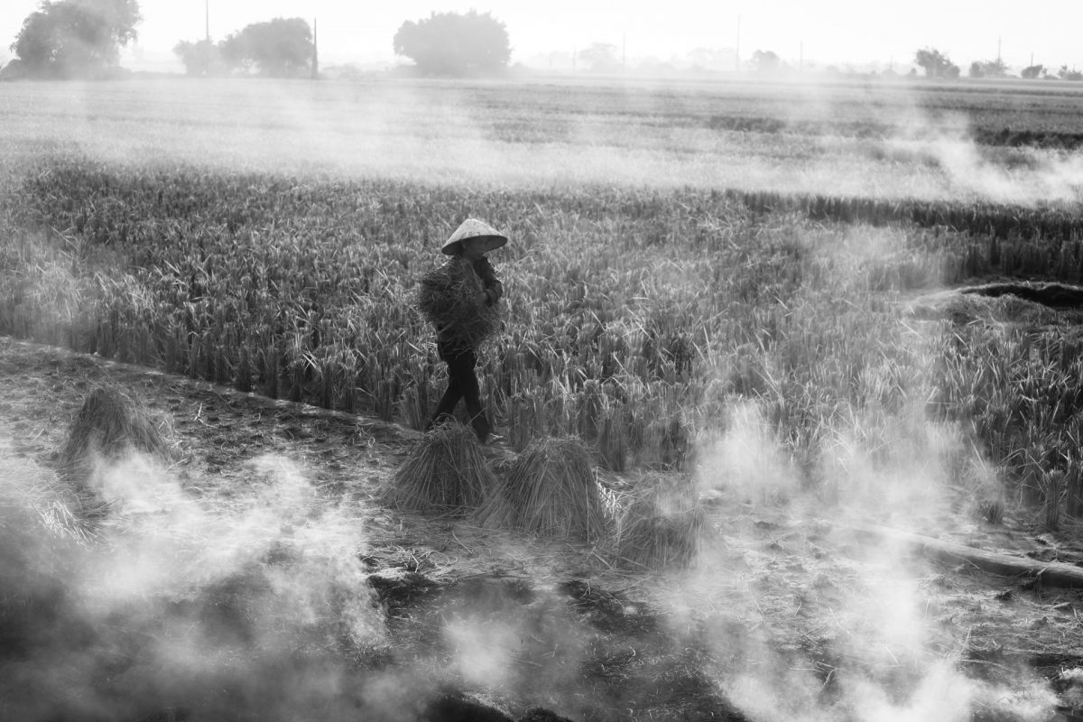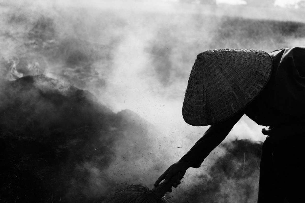 2 tác phẩm ảnh trên là thực trạng của việc đốt rơm rạ sau khi thu hoạch lúa. Điều này làm ảnh hưởng trực tiếp đến chính bản thân của người làm việc này và nó còn ảnh hưởng đến sức khoẻ của nhiều người xung quanh. Không những vậy đốt rơm rạ còn làm ảnh hưởng xấu đến môi trường, làm ô nhiễm không khí, gây mất cân bằng hệ sinh thái.