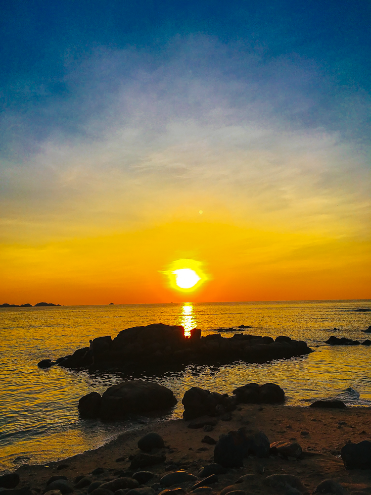 Vào 1 ngày mùa hè đẹp trời, tôi đi du lịch đến hòn đảo tên là Bình Ba. Không khí ở đây thật sự rất trong lành hơn thành thị rất nhiều, đặc biệt đó là màu xanh của biển rất trong và đẹp hơn bất kì nơi nào mà tôi đã đi trước đó, khiến tôi có nhiều cảm xúc dâng trào, tôi cầm điện thoại chụp rất nhiều tấm hình. Có lẽ đối với tôi thì việc thức dậy thật sớm để được ngắm nhìn cảnh biển trong lành vào buổi sáng là một điều khá hiếm hoi. Thế nhưng tôi vật lộn với giấc ngủ ngon một hồi thì tôi cũng dậy được. Khi tôi ngắm cảnh mặt trời mọc lên trên biển thì sẽ chẳng bao giờ quên được. Đó là những khoảnh khắc vô cùng hùng vĩ của thiên nhiên ban tặng cho con người, phối hợp thêm tiếng sóng biển rì rào như bài ca bất tận ca ngợi vẻ đẹp giàu có của thế giới đại dương.