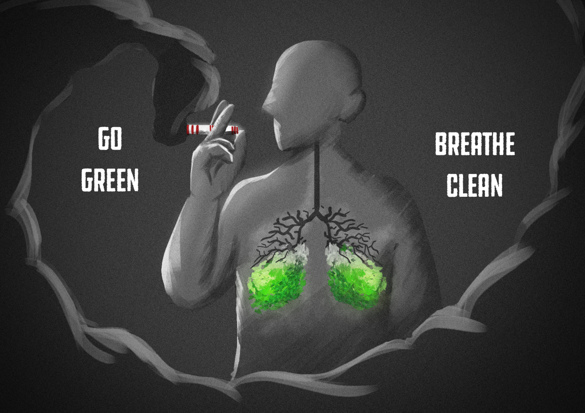 Biến đổi khí hậu đang gây ra những hậu quả nghiêm trọng, bao gồm nước biển dâng, tăng nhiệt độ, mất rừng và suy giảm đa dạng sinh học. Ở trong bức tranh này, con người đang cầm điếu thuốc có 3 sọc đỏ là đại diện cho ống khói công nghiệp đang thải ra hàng tấn khí thải độc hại và lá phổi xanh cũng đang chết dần chết mòn. Tuy nhiên, chúng ta có thể giải quyết vấn đề này bằng cách chuyển sang sử dụng năng lượng tái tạo, thúc đẩy công nghệ sạch, bảo vệ rừng và đa dạng sinh học, tăng cường giáo dục và nhận thức cộng đồng, hợp tác quốc tế. Chúng ta cần hành động ngay bây giờ để bảo vệ môi trường và để lại một hành tinh xanh cho các thế hệ tương lai.
