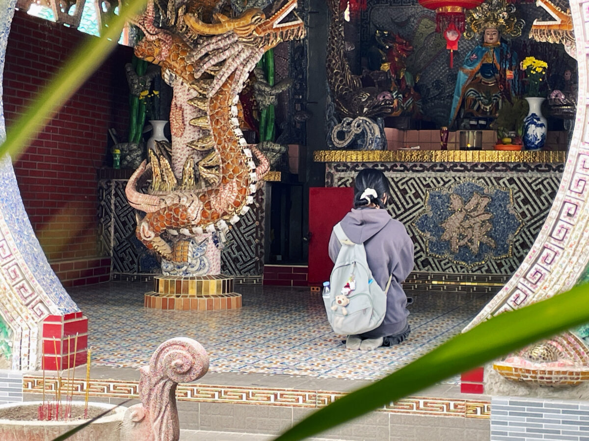 Mô tả: Giữa nhịp sống hối hả của thành phố, người trẻ tìm về Phù Châu Miếu để cầu nguyện. Khoảnh khắc thành kính này như một hành trình tâm linh, nối liền thế hệ hiện đại với tín ngưỡng truyền thống, nơi đời thường gặp gỡ sự tĩnh lặng và linh thiêng.