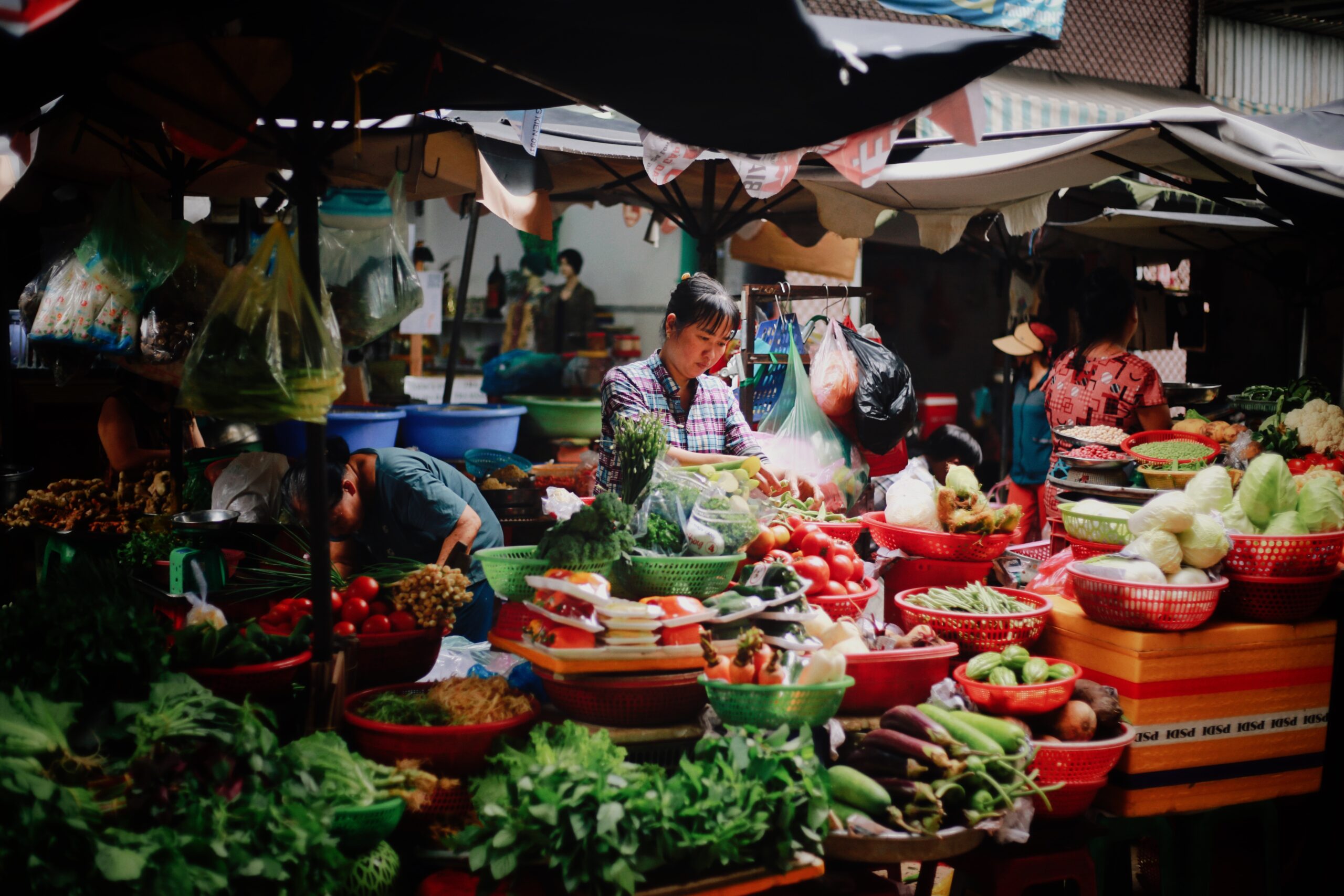 Tác phẩm 1: Mình muốn bắt trọn sự tươi rói và sung túc của gian hàng, tập trung vào ánh mắt chăm chú của cô bán hàng, để thấy được cái hồn và cái nhiệt của khu chợ này.