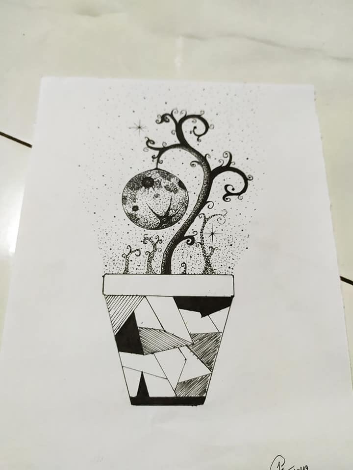 Bài vẽ chỉ mang hai màu đen trắng mộc mặc giản dị nhưng không như bạn nghĩ mà ẩn sâu trong nó là một vẻ đẹp nếu bạn đắm chìm vào bức tranh bạn sẽ thấy được điều đó. Bài vẽ chủ mang hAi màu đen trắng mộc mạc và giản dị nhưng nó không đơn giản như ta nghĩ mà ẩn bên trong nó là một vẽ đẹp nếu bạn thả hồn vào nó thì sẽ thấy được vẻ đẹp của bức tranh