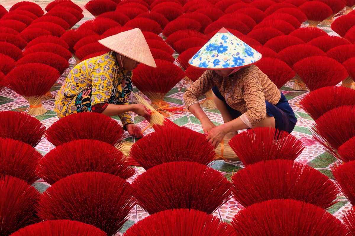 Tác phẩm được chụp tại làng nhang Lê Minh Xuân, cách trung tâm TP. Hồ Chí Minh 30km. “Sắc Hương Việt” ghi lại vẻ đẹp rực rỡ và chân thực của làng nghề làm nhang – nơi mùi hương quyện cùng sắc đỏ vàng tạo nên bản hòa ca của lao động và truyền thống.