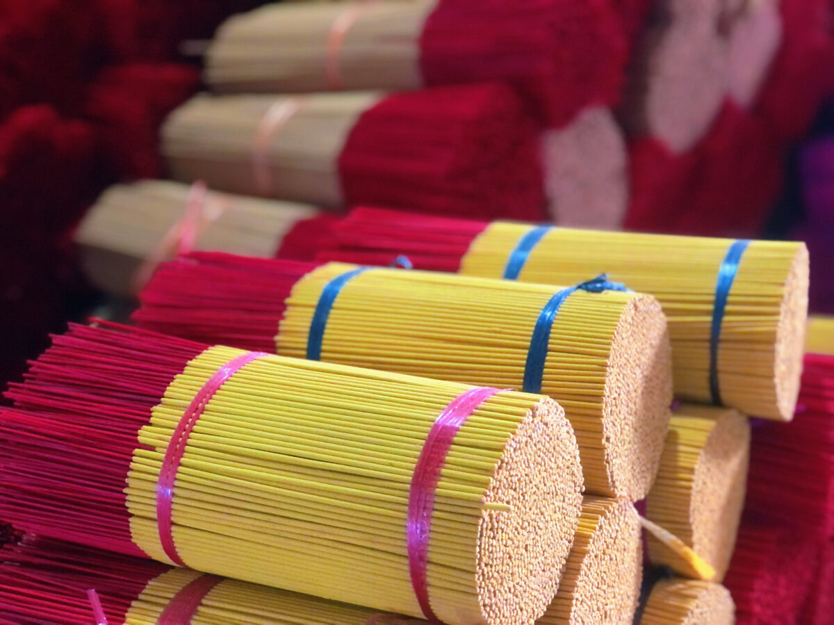 Tác phẩm 5: Những bó nhang hoàn thiện, ngay ngắn và rực rỡ như kết tinh của niềm tin và lòng thành. Từng sợi hương gói ghém bao công sức, tâm huyết và niềm tự hào làng nghề.