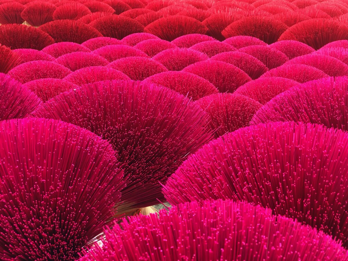 Tác phẩm 2-3: Những bó nhang đang được phơi xen kẽ, từng lớp màu hiện lên dưới nắng, hòa cùng mùi hương trầm thoang thoảng