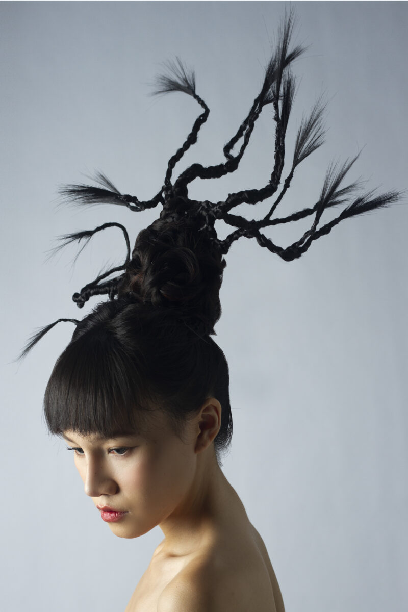 Bước tái sinh thứ hai – Cây xoan đào – được lấy cảm hứng từ tranh thiên nhiên – cây cối thuộc dòng Hàng Trống, với mái tóc được biến hóa thành những nhánh cây đang vươn lên.