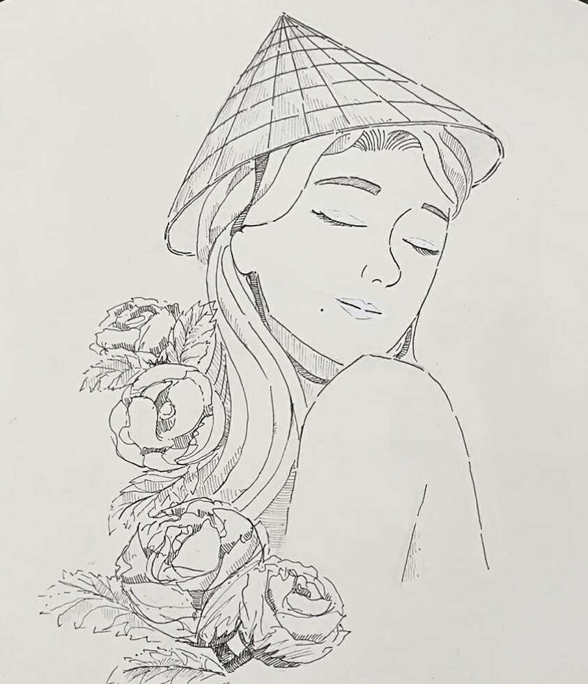 Em vẽ ra một bức tranh khi nghĩ đến hình tượng người phụ nữ Việt Nam dịu dàng, đoan trang, mềm mại và yêu kiều.