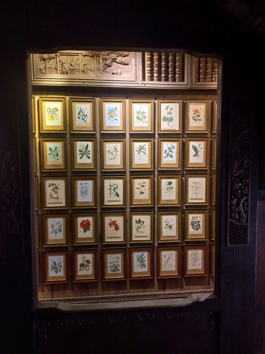 Hơn 300 bức tranh vẽ tay về các cây thuốc của Việt Nam được treo trên tường.