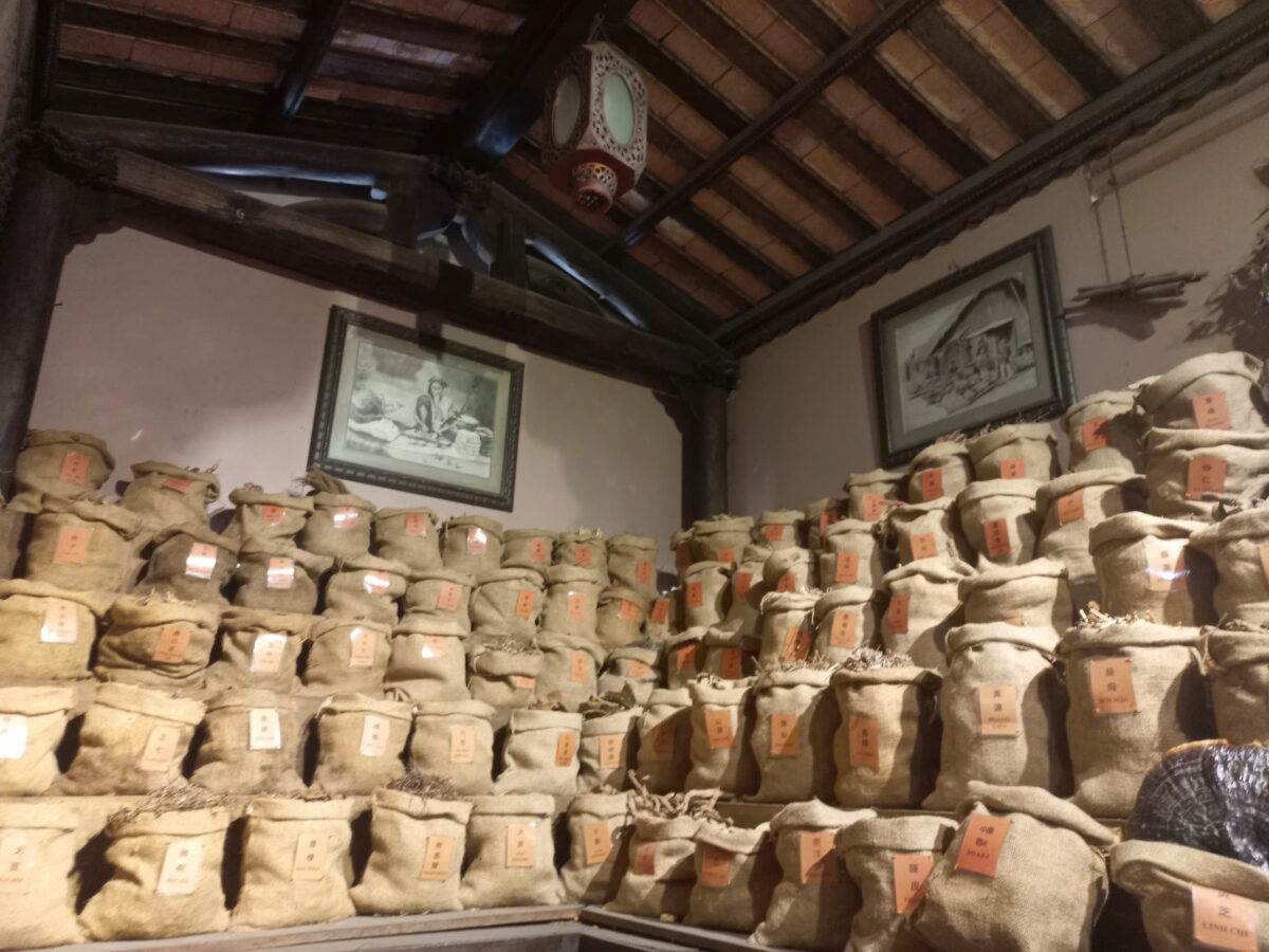 Những bao thảo dược mộc mạc xếp ngay ngắn trong không gian cổ kính, như kể lại hành trình gìn giữ và phát huy tinh hoa y học dân tộc qua từng vị thuốc Nam.
