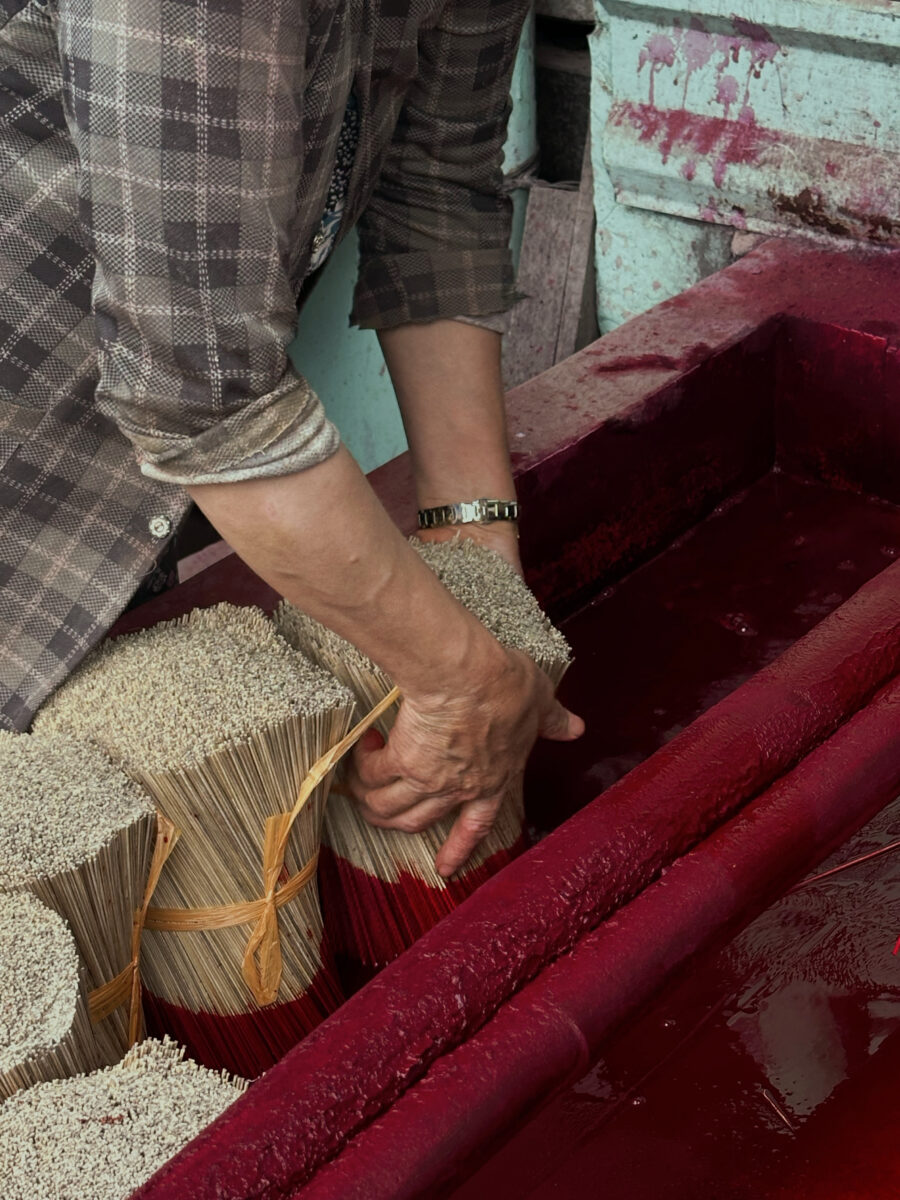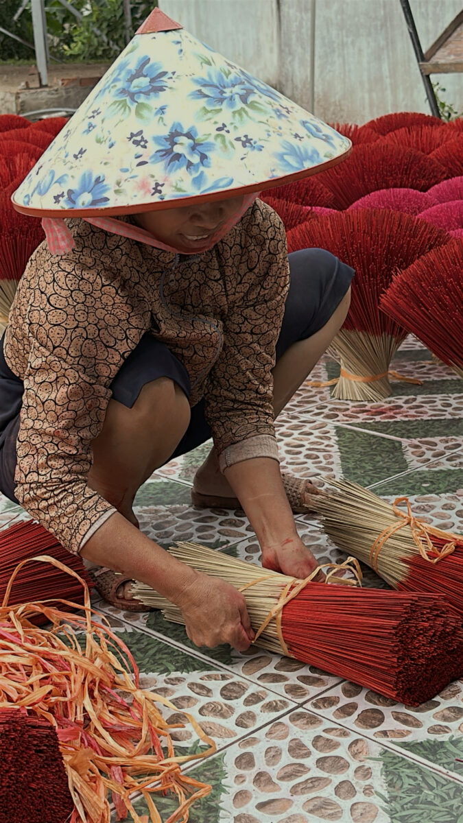 Hình 3-4: là hình ảnh cột nhang thành bó sau đó để phơi khô chân bằng đôi bàn tay sạn rõ theo năm tháng.