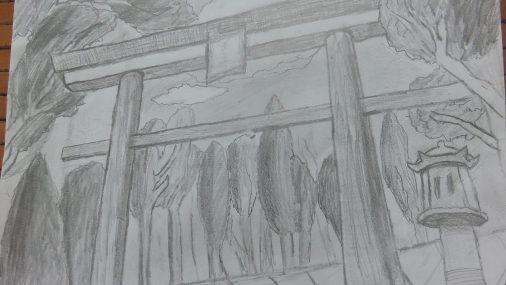 Vẽ lên 1 cảm xúc là điều mình yêu thích nhất trong bộ môn vẽ. ( nụ cười hạnh phúc sau nhưng thăng trầm)Chiến binh trăng máu.Đây là bức hình mình phác lại địa danh nổi tiếng ở Nhật Bản – Cổng Torii