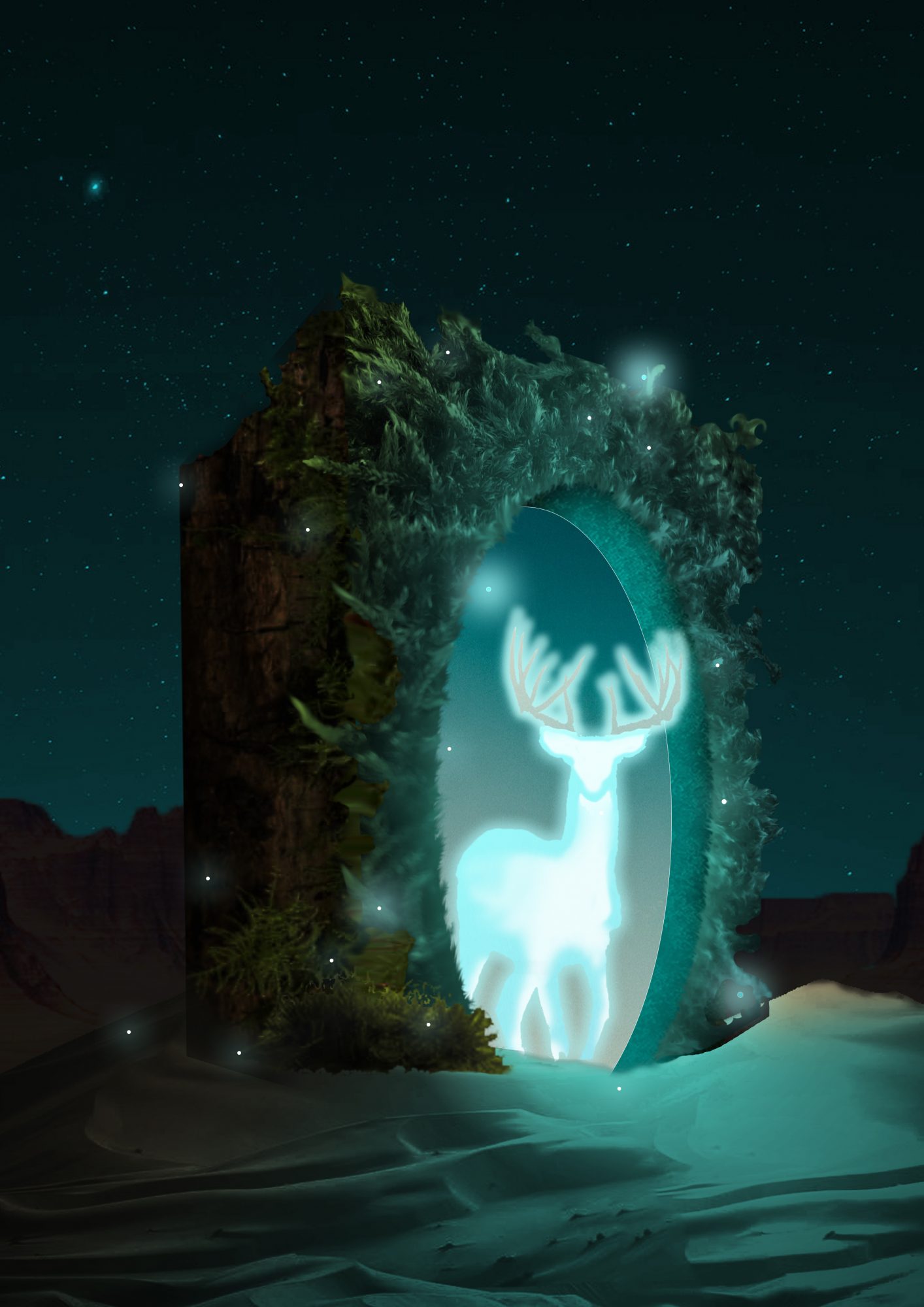 Có những người tin rằng khi đã đạt đến giới hạn của sự lấn chiếm, tàn phá của con người đối với Trái Đất thì mẹ thiên nhiên sẽ bắt chúng ta phải trả giá cho hành động ấy. Rõ ràng nhất đó là băng đang tan ra nhanh hơn bởi hiện tượng nóng lên toàn cầu. Mình luôn tự hỏi khi mà băng tan hết thì những động vật bắc cực sẽ đi đâu và ai sẽ là người giúp chúng nếu không phải con người? Mình luôn thích tưởng tượng ra những thứ lạ lẫm làm lời giải cho những câu hỏi khó, nên mình đã nghĩ ngay đến hình ảnh hiện thân của thần rừng và thảm cỏ xanh mát là một chú hươu sẽ dẫn dắt những sinh vật ở hai cực đến những sa mạc rộng lớn hoang vắng của Ai Cập, Châu Phi nơi con người ít có thể tác động đến để tìm ngôi nhà mới cho chúng sau khi băng đã tan hết do biến đổi khí hậu, cụ thể hơn đó là hiện tượng nóng lên toàn cầu.