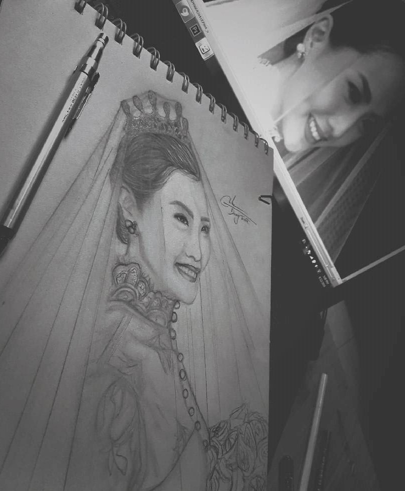 Là con gái ai mà không ước mơ một lần bước lên xe hoa. Đó có thể là ngày đẹp nhất và ý nghĩa nhất trong cuộc đời này. Và nhân vật trong tranh là chị mình, một người phụ nữ Việt Nam hiền lành xinh đẹp. Có lẽ chưa bao giờ mình được nhìn thấy nụ cười của chị đẹp như ngày hôm đó. Chị đã khóc nhiều rồi, giờ phải thật hạnh phúc nhé.