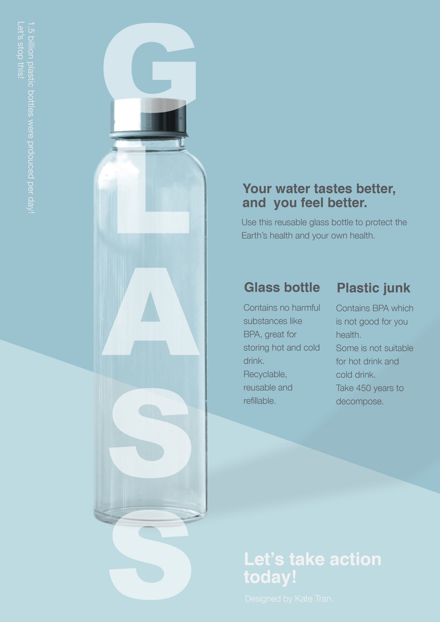 Mỗi ngày, có đến 1.5 tỷ chai nước nhựa được sản xuất ra trên thế giới, tương đương với việc cứ năm người thì có một người sử dụng chai nước nhựa. Và những chai nước này mất đến 450 năm để phân hủy. Hãy cùng chung tay giảm số lượng chai nước nhựa bằng cách sử dụng sản phẩm thay thế là chai nước thủy tinh. Không chỉ góp phần bảo vệ môi trường, mà thực tế cho thấy, chai nước thủy tinh an toàn hơn cho bạn khi không chứa các chất độc như chai nước nhựa. Bạn cũng có thể dễ dàng mang theo bên mình để sử dụng mọi lúc, mọi nơi.