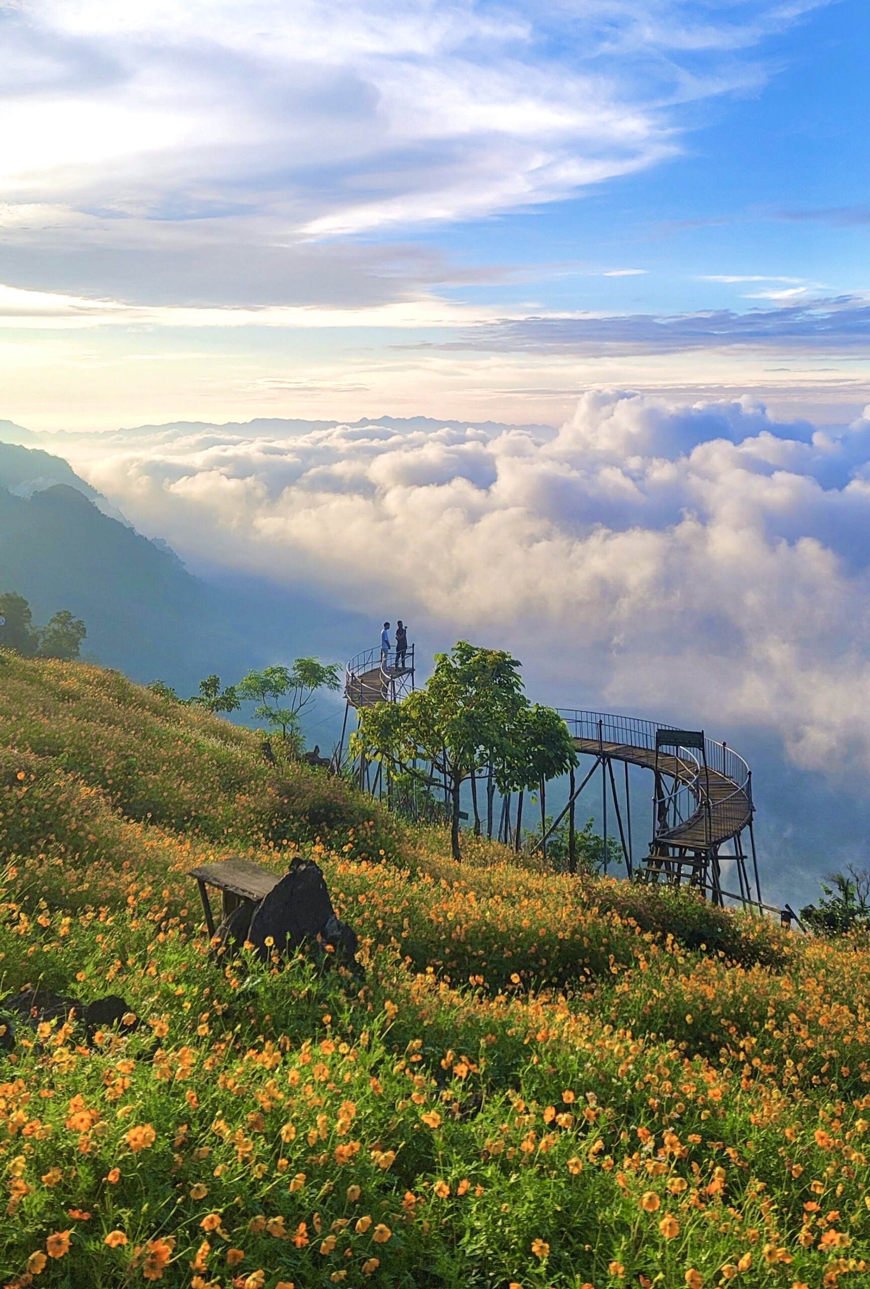 Buổi sáng các bạn thường làm gì để khởi động ngày mới? Thật vui khi được trải nghiệm buổi thực tập ở Hòa Bình . Buổi sáng trên bản thật thanh bình – một không gian tĩnh lặng của một mùa thu bình yên, không khí trong lành với những bông hoa vàng trên đồng cỏ xanh. còn gì tuyệt vời hơn khi được ngắm mây trên bản vào sáng sớm và tận hưởng một chuyến đi thật có nghĩa ấy. Quên đi khói bụi thành phố, những tiếng còi inh ỏi, những con đường tấp nập và tắc đường vào sáng sớm trên thành thị, nhớ lại khi ở đó cảm thấy mọi sự trĩu nặng trên vai đã rũ bỏ đi đc phần nào. Thật nhẹ và thanh mát!