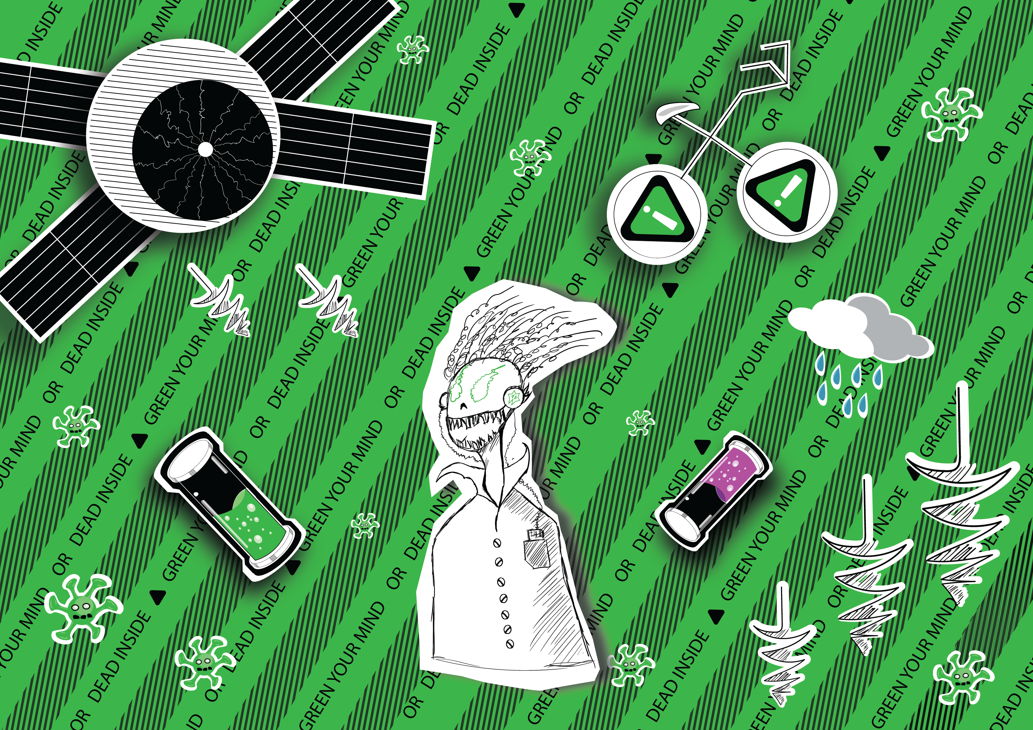 Đây là tác phẩm dự thi mảng thiết kế của em, dead inside có nghĩa là chết bên trong đối lập với cụm từ chủ đề của cuộc thi là “ Green your mind “ hay nghĩ xanh , sống xanh,… Như mọi người đã biết thì con người chúng ta đã phát triển rất đột phá trong suốt những thế kỉ qua, tạo ra rất nhiều giá trị cho thế giới này nhưng tốt có và xấu cũng vậy. Thật sự mà nói, em thấy mình phát triển rất nhiều thứ nhưng có lẽ thứ chúng ta không nghĩ tới lại là sự phát triển của những tạo vật khác xung quanh ta, ta cứ mải chạy theo cái cuồng quay ấy mà vô hình chung quên mất tại sao chúng ta lại có thể được sống như bây giờ là do có sự vận động liên tục của thiên nhiên cây cối giúp điều hòa lại môi trường sau mỗi cuộc du kích tàn phá của loài người nói chung. Chỉ đến khi ta phải bị cô lập và ở một chỗ, liên tục cảm thấy sợ hãi cái chết rình rập quanh mình, bấy giờ mới thấy được cảm xúc của một cái cây lớn lên nhưng đâu đâu cũng có những con người có thể giết nó bất cứ lúc nào. Chúng ta đã phát triển vượt bậc đến mọi lĩnh vực, nào là khoa học vũ trụ, nào là trải nghiệm cuộc sống, thuốc chữa bệnh, và rất nhiều thứ nữa, nhưng sự sáng tạo của con người lại còn kéo theo cả những tham vọng chiến tranh và khoa học vũ khí để giúp đỡ cho việc đó nữa.