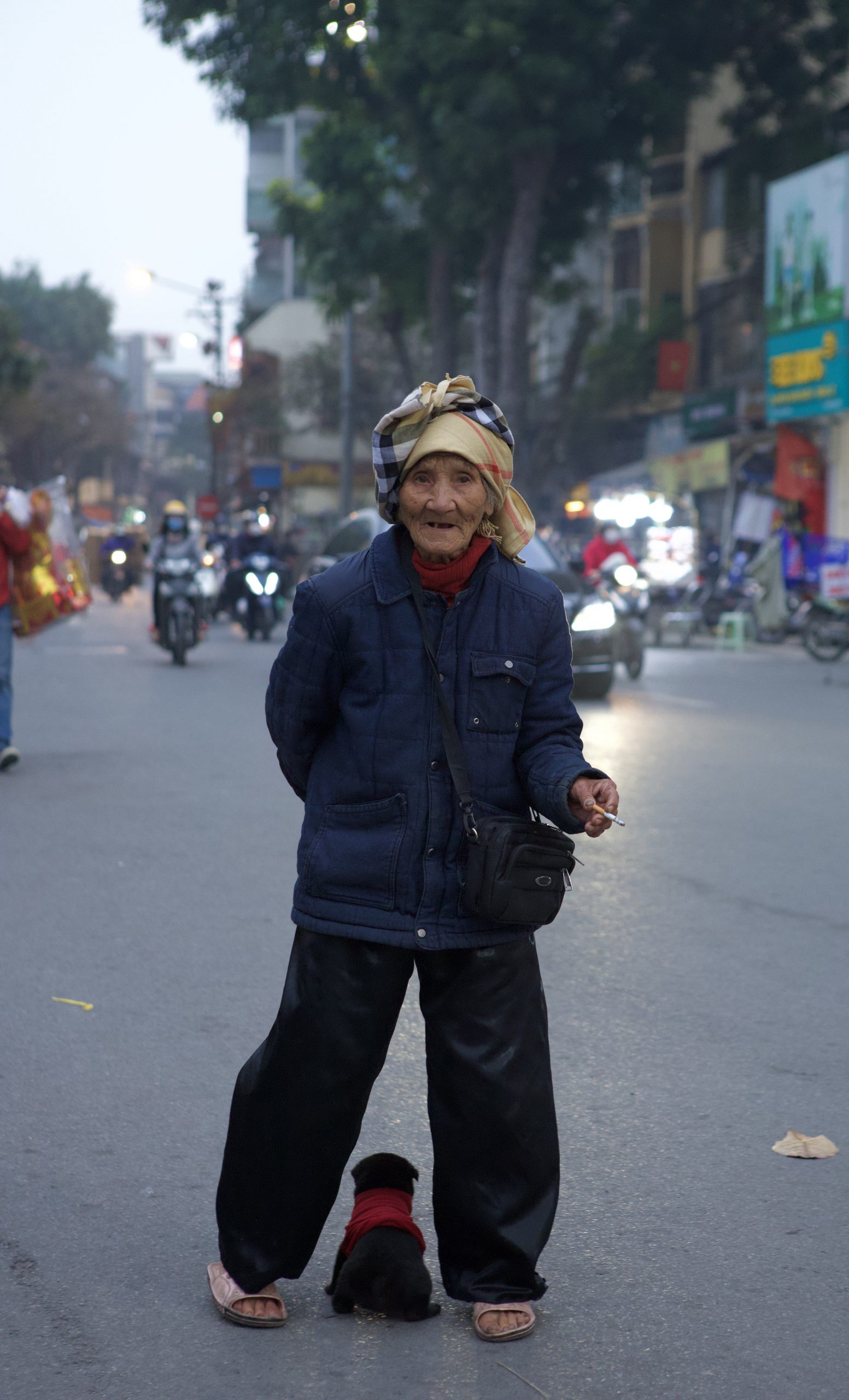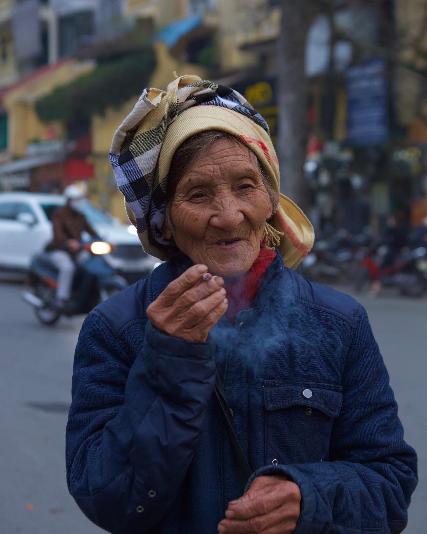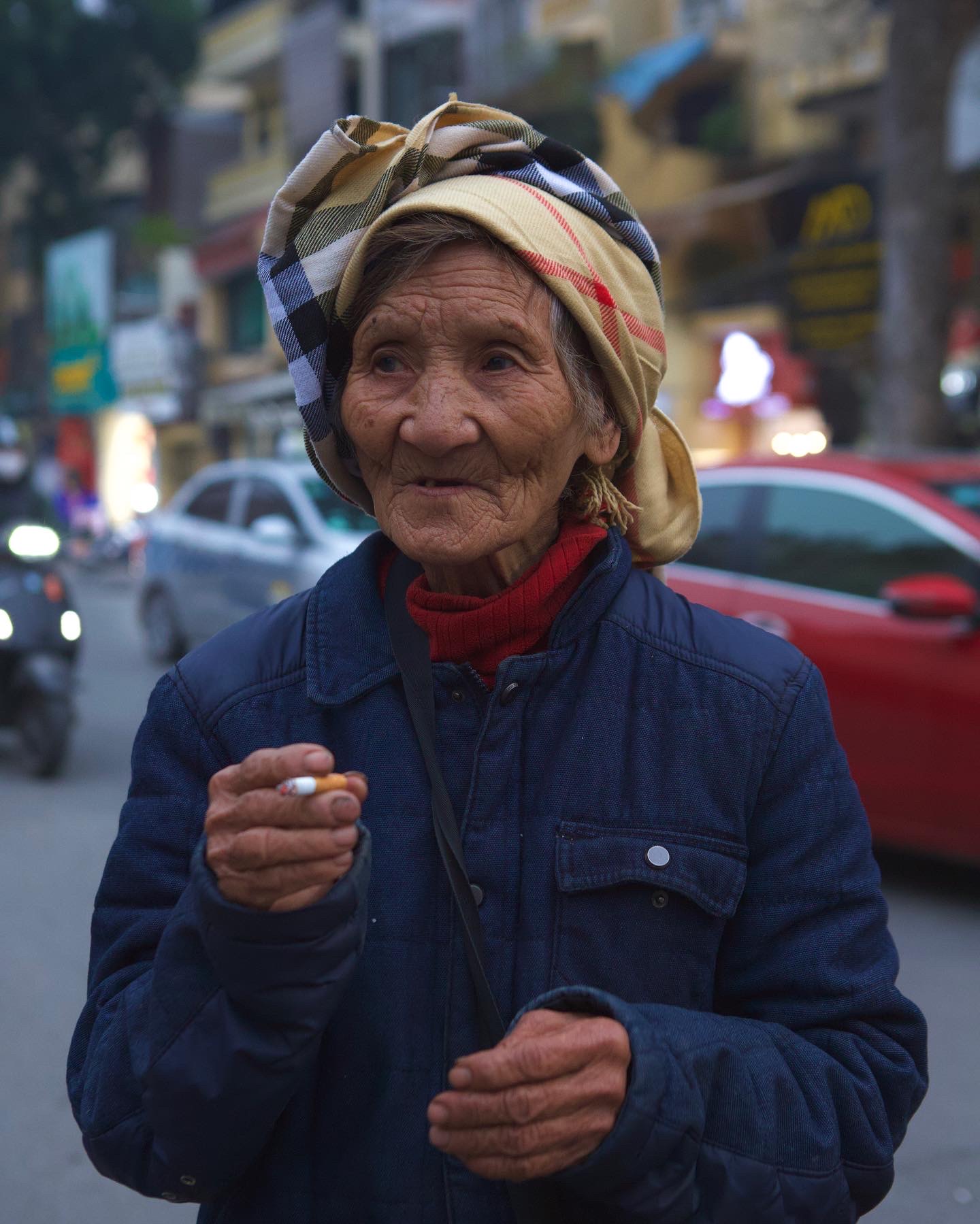 Một buổi tình cờ mình có cầm chiếc máy ảnh đi dạo loanh quanh ở chợ Đồng Xuân và có mua nước ở gánh hàng rong của bà. Rồi khi mình thấy bà hút thuốc mình khá là bất ngờ, có nghĩ trong đầu rằng sao giờ vậy rồi bà vẫn còn hút được thuốc. Sau đó mình có hỏi chuyện bà thì bà nói năm nay bà đã 101 tuổi nghe xong câu đó mình thật sự rất sốc khi tuổi đó rồi bà vẫn còn phải bán hàng rong ngoài chợ lại còn vẫn hút được thuốc nữa. Khi mình hỏi sâu thêm sao bà còn hút thuốc vậy bà có nói lại cho mình rằng “đời nó bạc lắm cháu ạ” rồi bà bảo quê bà ở Kinh Môn, Hải Dương bỏ quê lên Hà Nội mưu sinh từ những năm 1972 . Đến khi ở cái tuổi “hiếm gặp” bà vẫn chưa nghỉ ngơi bà còn nói với mình bà không có người thân, một mình sống ở Hà Nội và chỉ có những chú cún nhỏ làm người bạn đồng hành cũng được coi là niềm an ủi cho bà, một điều ấm áp giữ thủ đô.