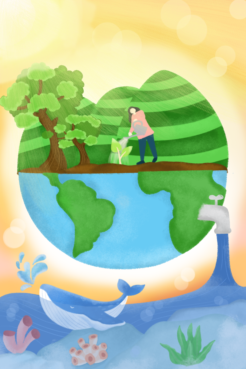 Tác phẩm với hình ảnh con người nhỏ bé đang tưới một mầm non thể hiện không phải những điều lớn lao mới có thể góp phần bảo vệ môi trường xanh, sạch, đẹp mà đôi khi chỉ những điều nhỏ bé, gần gũi với con người như ươm một hạt mầm, theo thời gian có thể trở thành một cây đại thụ, hơn thế còn là những cánh rừng và trở thành những ngọn núi cao. Theo mạch ngầm dưới lòng đất, dòng nước đổ ra đại dương rộng lớn. Trái Đất có nhiều cây xanh được bao phủ bởi tầng khí quyển dày đặc. Màu vàng và xanh chủ đạo thể hiện sự tươi mới, tràn đầy nhựa sống. Vậy nên hãy trồng nhiều cây xanh để cuộc sống mỗi người trở nên trong lành, đáng sống.