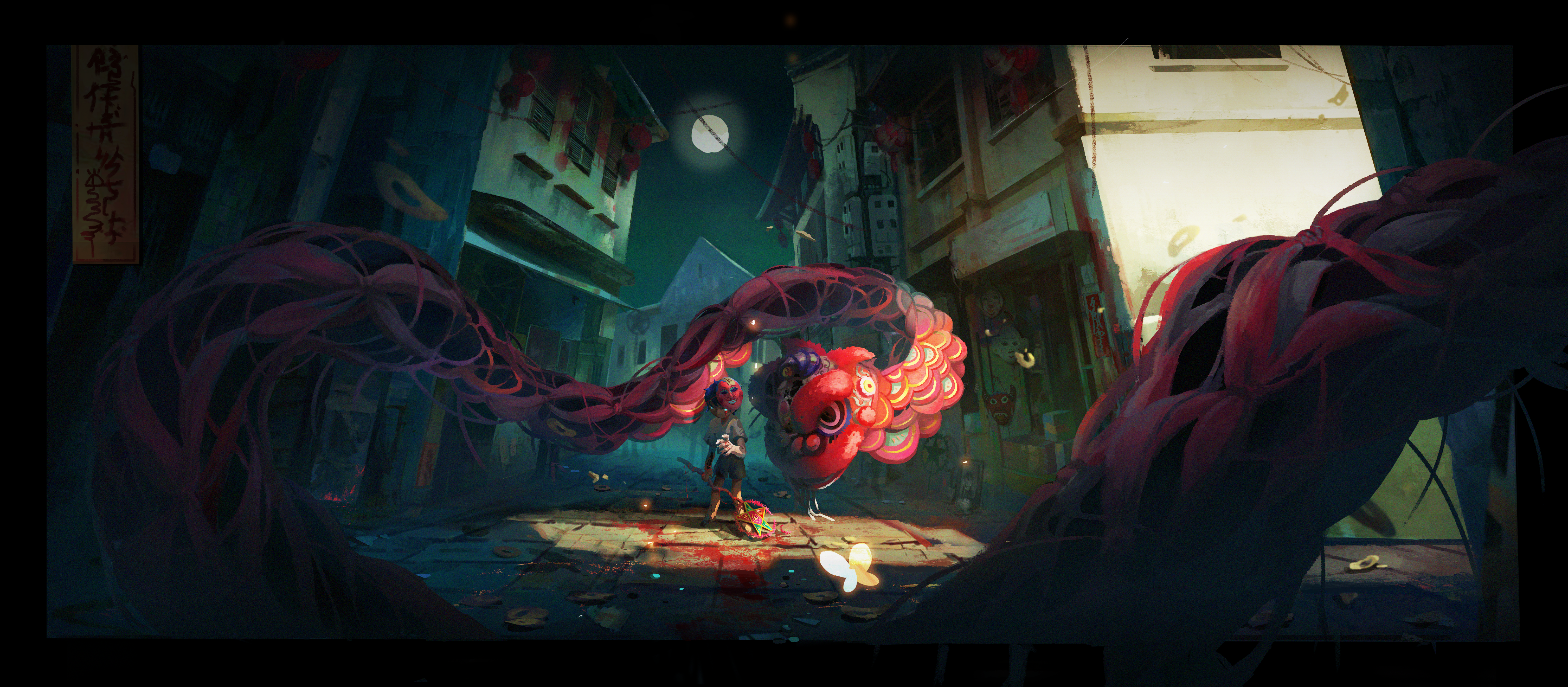 Mình vẽ về cảnh hậu trung thu, với khung cảnh vắng vẻ, hơi hoang tàn sau một đêm vui chơi. Khung cảnh mang một chút linh dị và u ám.