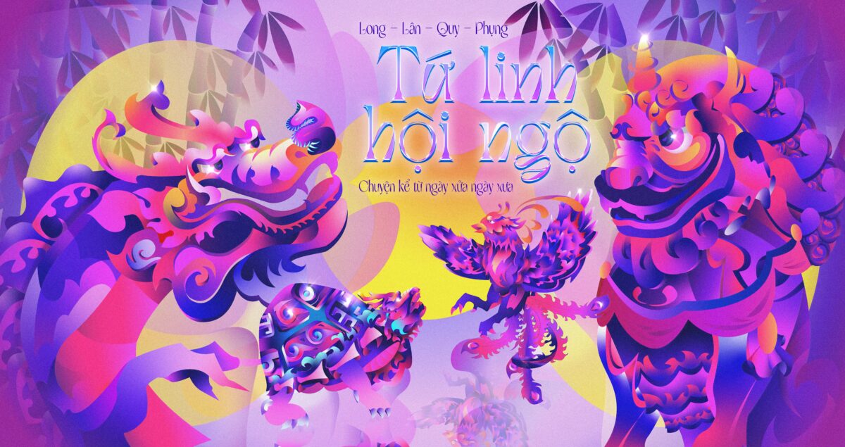 Tuy nhiên, để mang cho Tứ linh một diện mạo mới mình đã chọn một hướng tiếp cận hiện đại. Bắt đầu bằng việc phác thảo và đơn giản hóa các chi tiết rồng, lân, rùa và phượng để giữ lại tinh hoa và uy lực mà không bị gò bó bởi khuôn mẫu cổ điển. Khi đi vào quá trình lên màu, mình đã áp dụng các gam màu neon rực rỡ, phá cách và gradient, tạo nên sự tương phản mạnh mẽ.