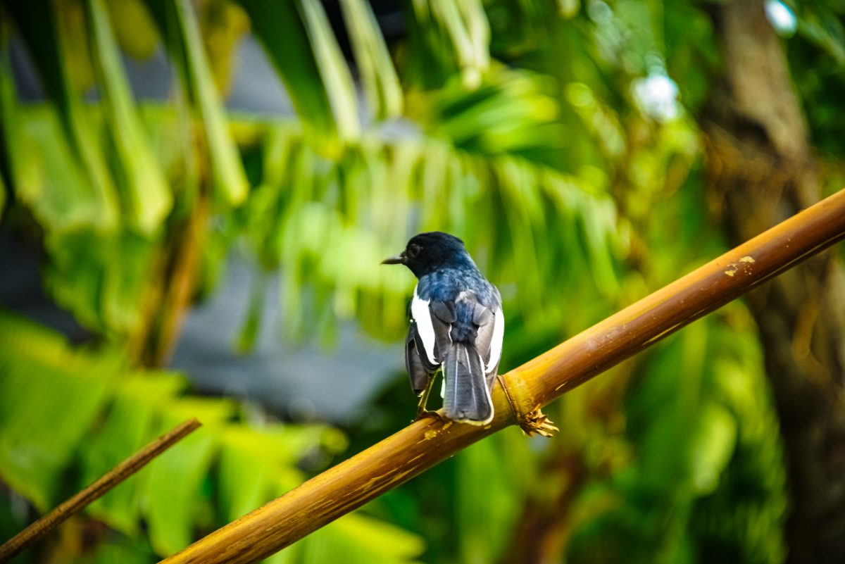 Thật ra em cảm thấy rất may mắn khi chụp được ảnh chú chim chích chòe hay bay về vườn nhà em mỗi buổi chiều. Lúc đầu em chụp cũng không nghĩ ngợi gì nhiều, nhưng khi đưa máy lên, em lại cảm thấy rằng chú chích choè này rất gần gũi với con người. Dù thiên nhiên tươi đẹp như thế nhưng goài kia vẫn có những người vô ý thức chặt phá cây rừng, phá hoại thiên nhiên.