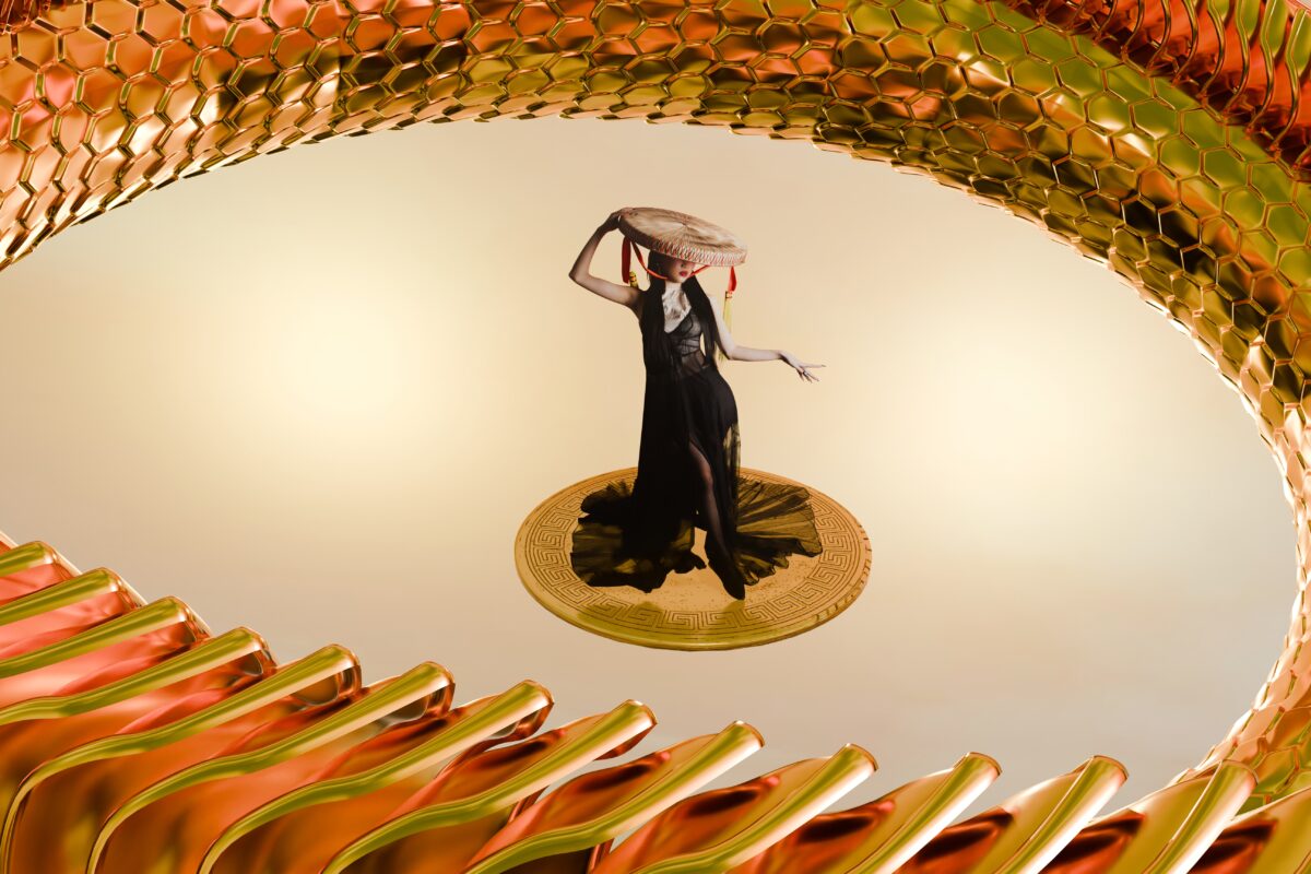“VIỆT 2.0” là một series sử dụng lại các bức hình từ các dự án nhiếp ảnh về văn hóa ba miền trước đây của em, nhưng được tái táo lại trong hình hài mới khi kết hợp với hình thức 3D modelling. Con số 2.0 không chỉ gợi ý về một “phiên bản nâng cấp” mà còn là biểu tượng cho tinh thần đổi mới – khi văn hóa Việt được nhìn lại bằng góc nhìn đương đại. Bộ thiết kế gồm các hình ảnh đại diện cho ba miền đất nước: