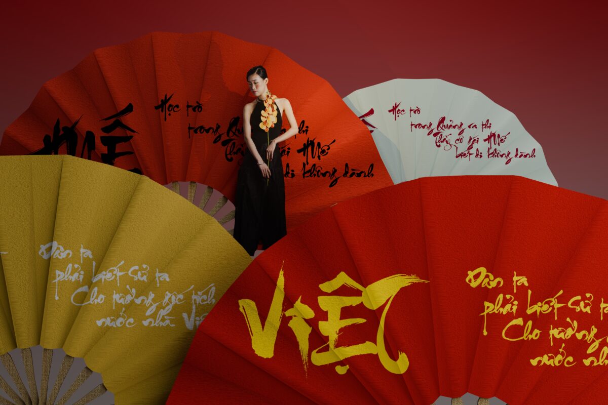 - Miền Trung – cảm hứng từ làng quạt Bao Vinh ở Huế, nơi người nghệ nhân viết nên những câu thơ thư pháp trên từng cánh quạt rực rỡ.
