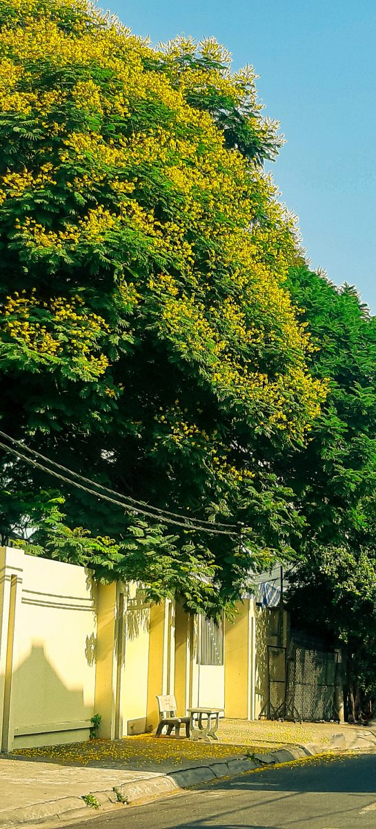 Một buổi sáng chủ nhật đầy ánh nắng ban mai chiếu qua từng tán cây, nó gợi cho ta về một sự bình yên của Sài Gòn. Không khói bụi, không đông đúc, nắng sớm làm ánh lên màu vàng của hoa, màu xanh của lá. Tuy chỉ là tình cờ nhưng cũng là may mắn khi được bắt gặp những hình ảnh này và nó khiến ta càng thêm yêu mảnh đất Sài Gòn này nhiều hơn