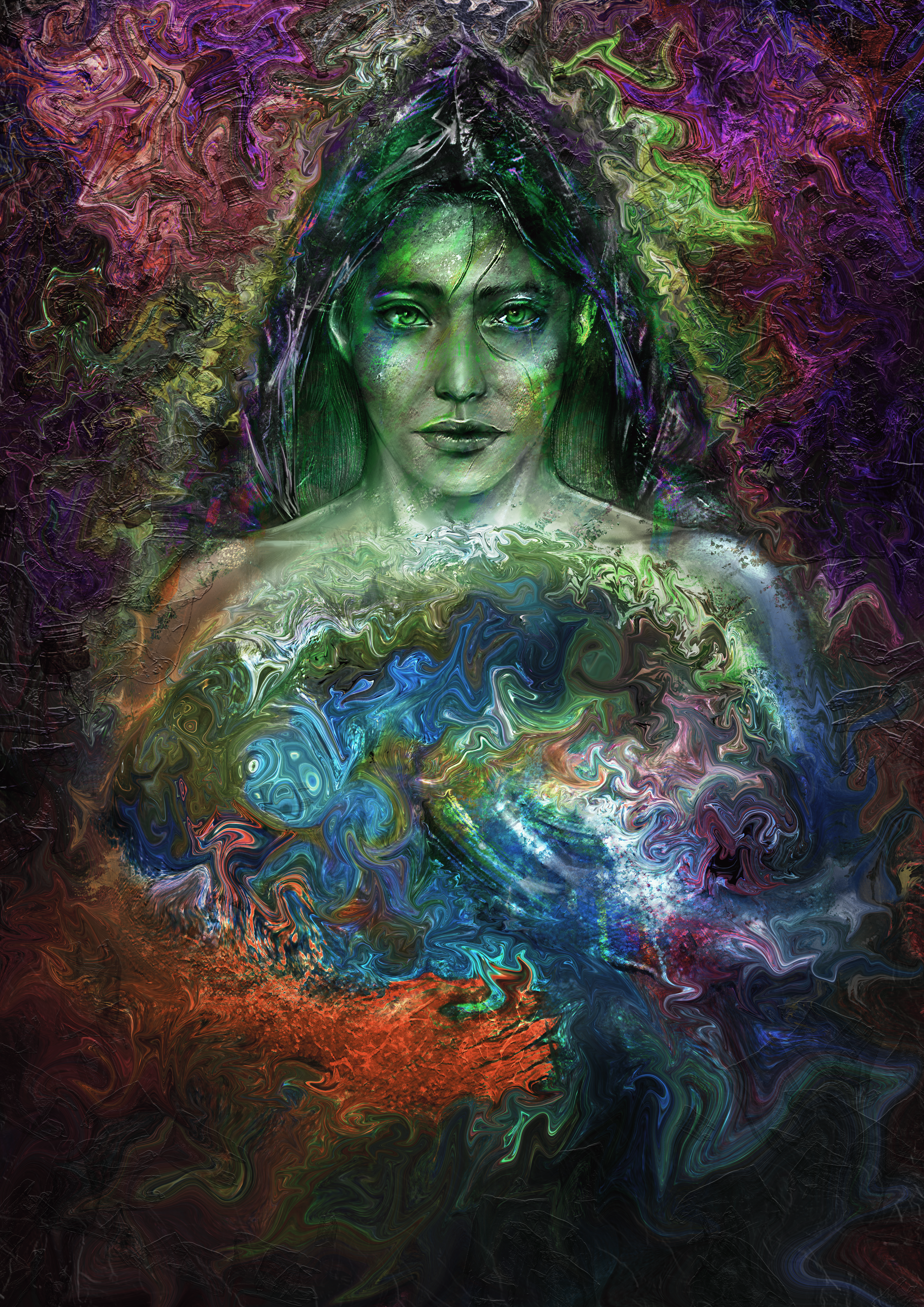 Một bức tranh đầy màu sắc nhưng lại là màu của sự ô nhiễm và hỗn loạn. Người phụ nữ tượng trưng cho vẻ đẹp của trái đất đang bị nhấn chìm trong những dòng màu hỗn loạn và đầy rác thải, trên đầu đội một túi nilon lớn, bên dưới là 2 bàn tay lửa và nước tượng trưng cho sức mạnh và nó đang là rất hỗn loạn. Điều này chứng tỏ trái đất sẽ rất kinh khủng khi con người vượt quá giới hạn. Quả cầu đầy màu sắc hỗn loạn là trái đất đang trong tình trạng tới giới hạn.