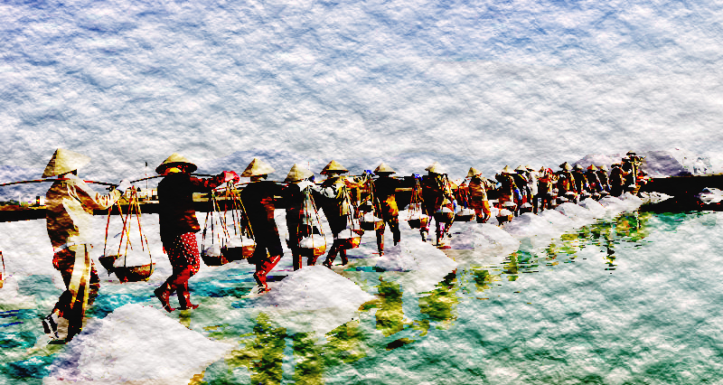Những miền quê Việt Nam không chỉ đẹp rực rỡ bởi những ruộng lúa ngập sắc vàng mùa thu hoạch hay hình ảnh biển xanh, cát trắng, nắng vàng đã đi sâu vào tiềm thức mà thấp thoáng đâu đó, ở những vùng ven biển, người ta còn bị mê hoặc bởi những cánh đồng muối được kết tinh từ giọt ngọc của biển cả, bởi những người diêm dân chân chất, lam lũ bao đời với công cuộc mưa sinh.