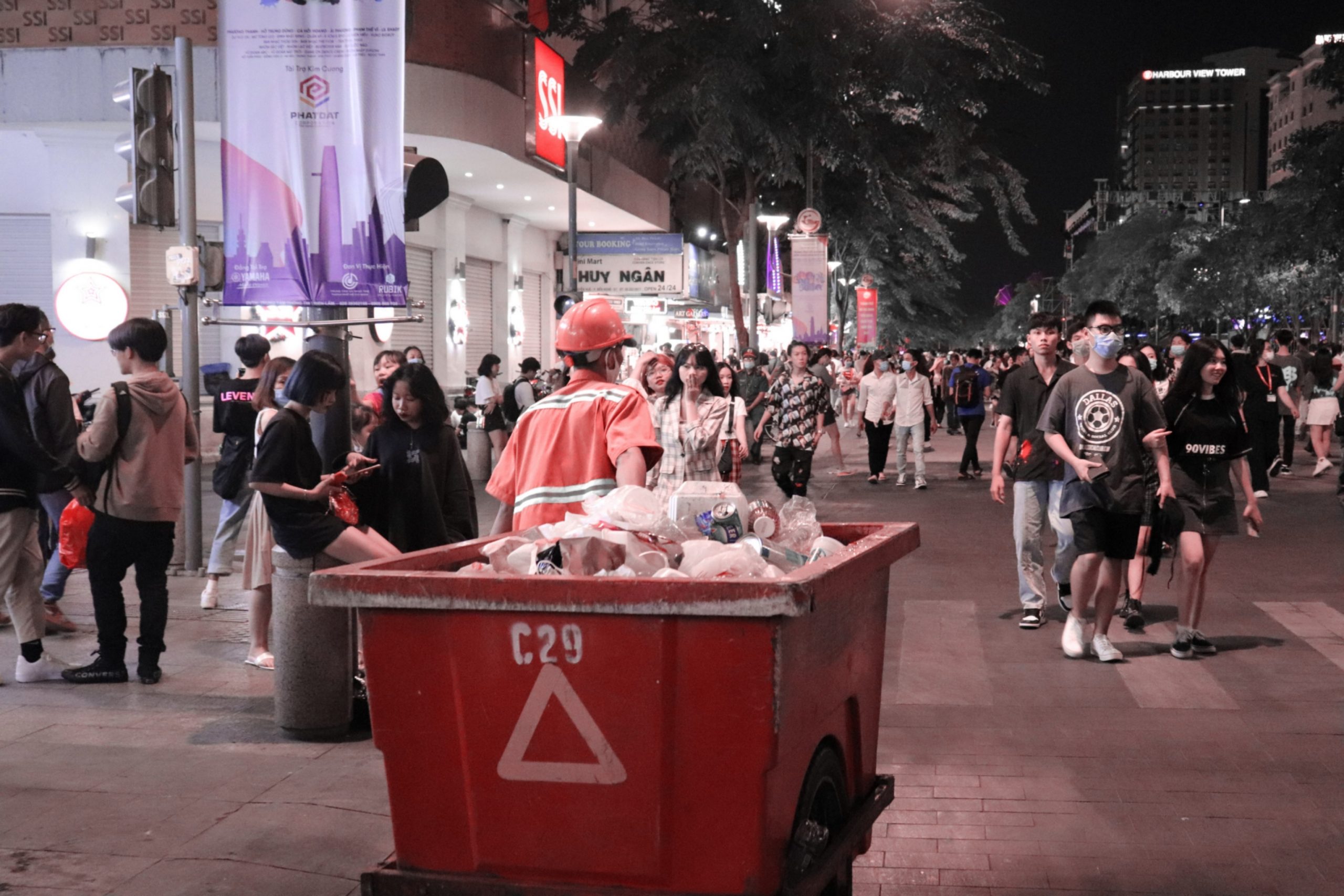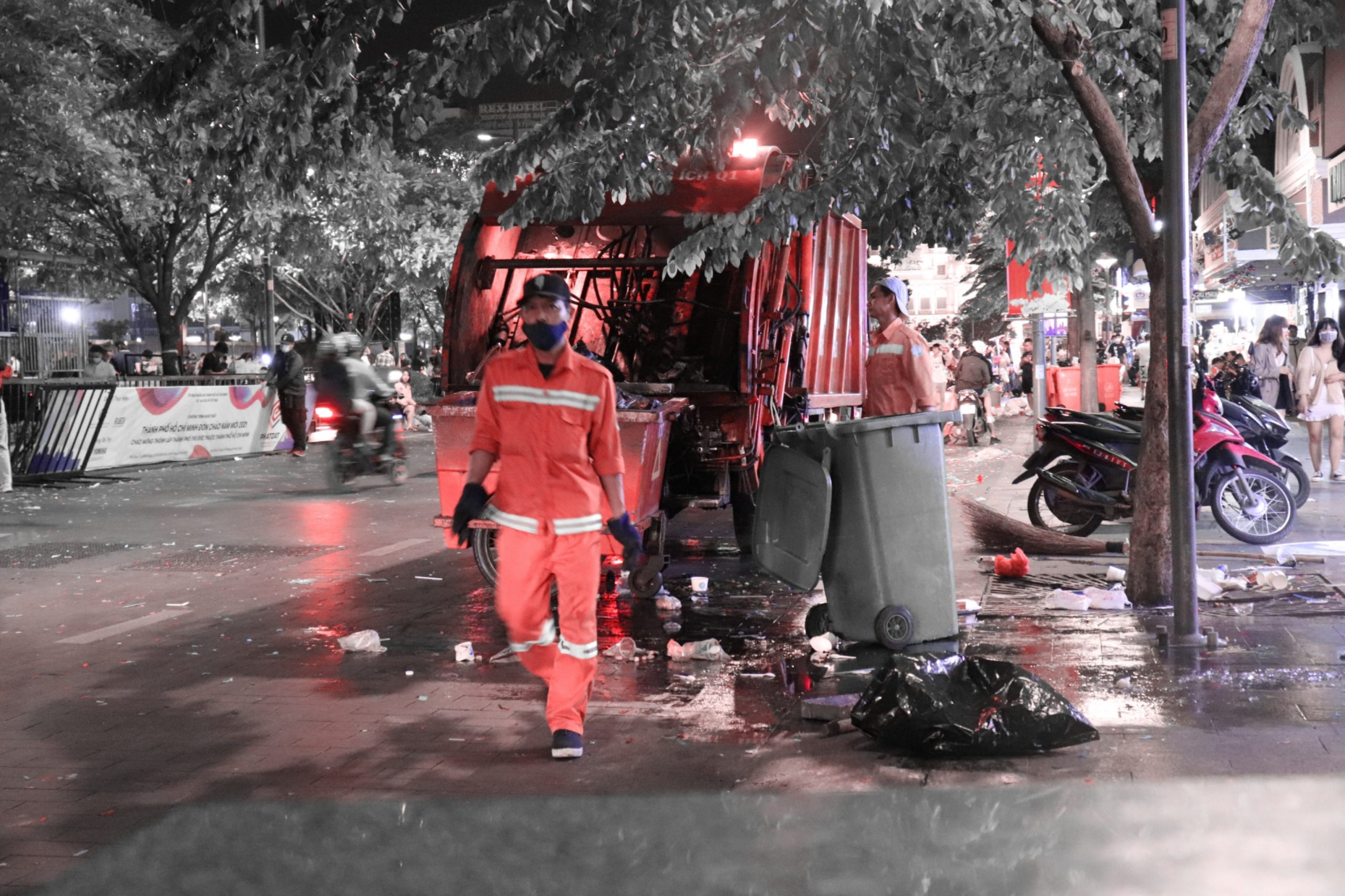 Đây là những khoảnh khắc tôi chụp được trong đêm Countdown đón chào năm mới 2021 tại phố đi bộ Nguyễn Huệ. Trong sự nhộn nhịp của dòng người, trong ánh sáng rực rỡ của sân khấu hay bầu trời đầy pháo hoa, có một màu sắc đã thu hút tôi hơn cả – màu của những người hùng áo cam. Họ là những cô chú lao công đang tất bật dọn dẹp đường phố, họ chọn không ở cùng người thân vì công việc của mình, họ cố quên đi những giây phút cuối năm vì trách nhiệm của bản thân. Màu áo cam, sự hy sinh đó của họ đẹp đẽ đến lạ thường. Qua ống kính, vẻ đẹp đó cho tôi niềm kính trọng, sự biết ơn và ngưỡng mộ sâu sắc. Tôi thầm cảm ơn họ vì đã làm người hùng cho thành phố xanh sạch, tôi dặn lòng mình là phải sống thật “Green Your Mind”.
