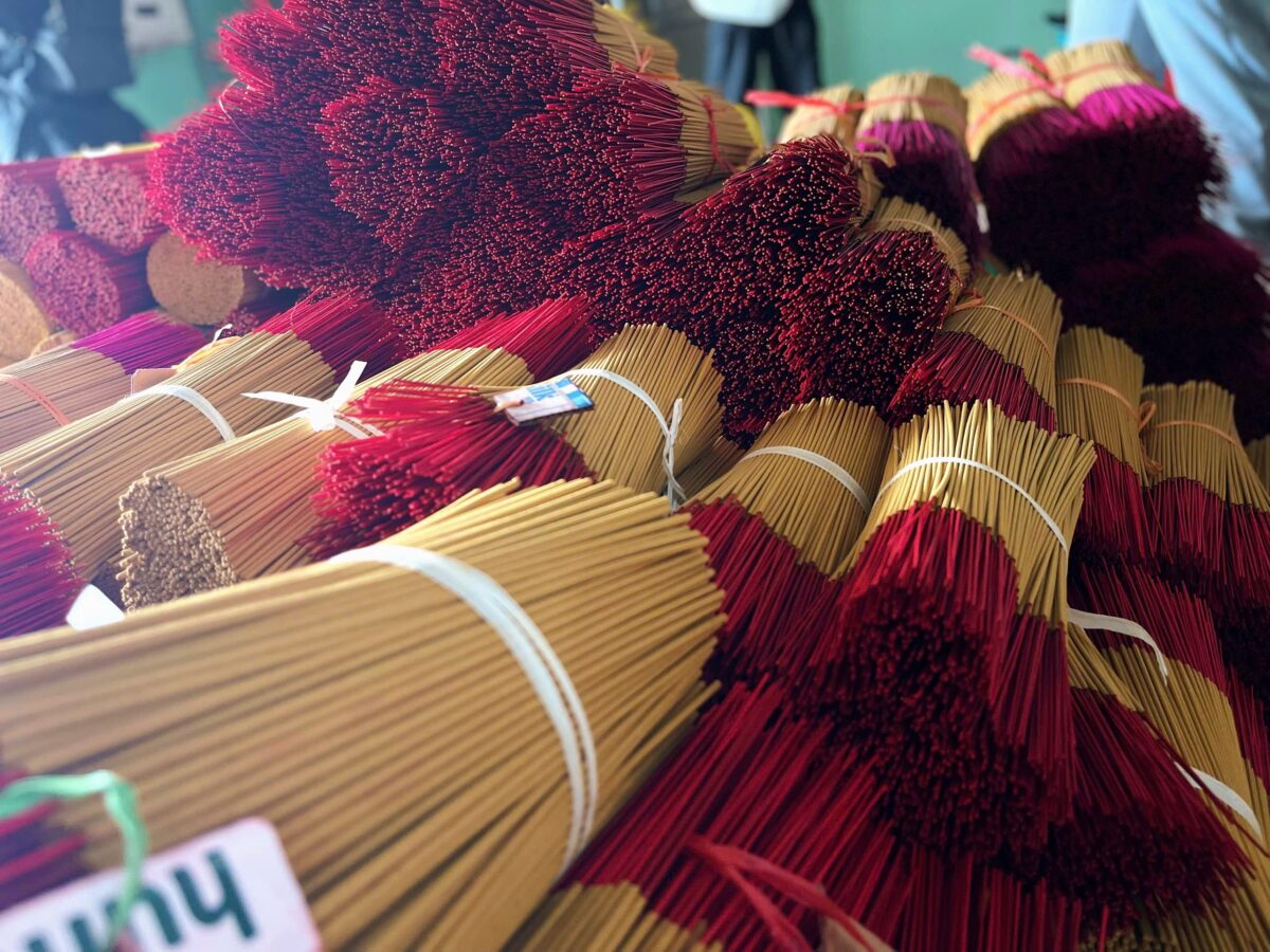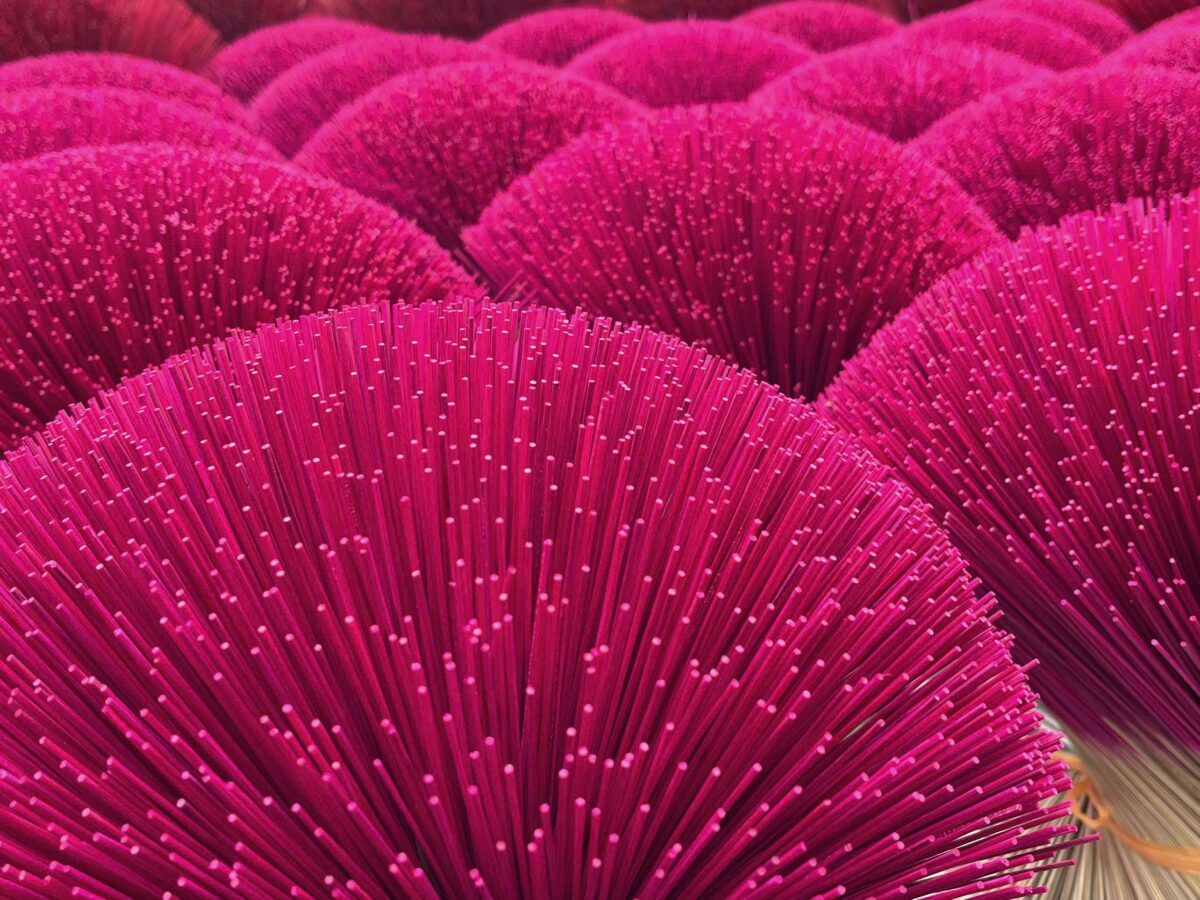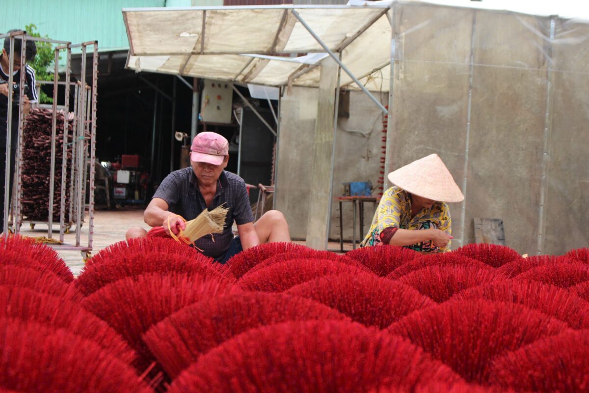 Tác phẩm ghi lại khoảnh khắc đời thường nơi làng nhang – một không gian thấm đẫm mùi hương trầm và sắc màu rực rỡ. Ở đó, từng bó nhang xếp đều như những bông hoa đỏ thắm, vừa gợi vẻ đẹp lao động, vừa chứa đựng nét thiêng liêng trong đời sống tinh thần người Việt. Không chỉ là hình ảnh của một làng nghề, đây còn là biểu tượng cho sự kiên trì, khéo léo và tình yêu văn hóa truyền thống. Qua tác phẩm, mình mong muốn gợi nhắc rằng: mỗi làn khói nhang bay lên là một phần hồn quê, một nhịp nối quá khứ với hiện tại.