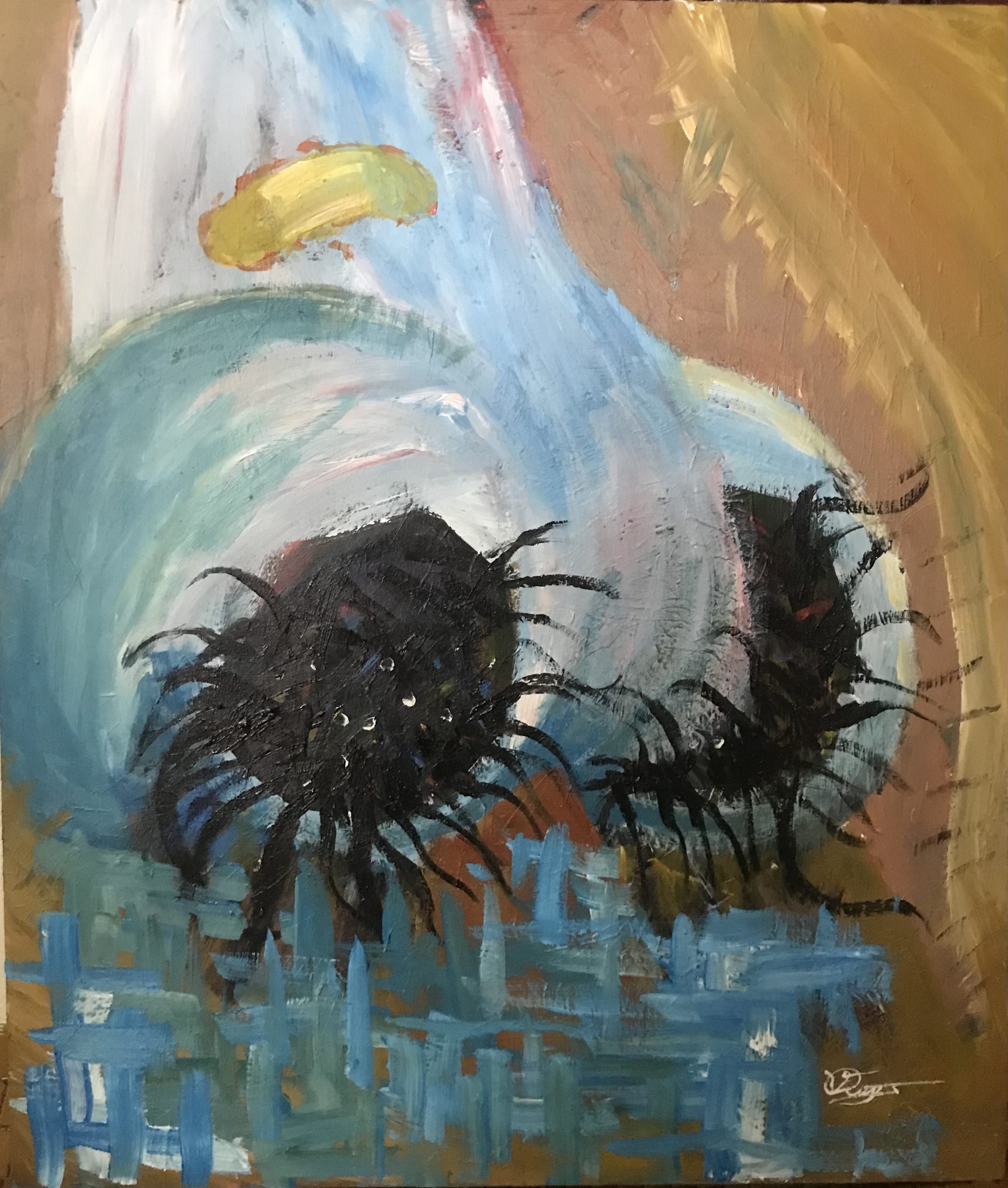 Môi trường ảnh hưởng đến hơi thở và đó là lý do “cái mũi” là hình ảnh chính. Mũi đại diện cho sự sống, tuy vậy ô nhiễm không khí khiến cho hơi thở của chúng ta càng trở nên tệ hơn, qua đó tôi hy vọng bức tranh trừu tượng này có thể nói lên một điều gì đó về ô nhiễm môi trường.