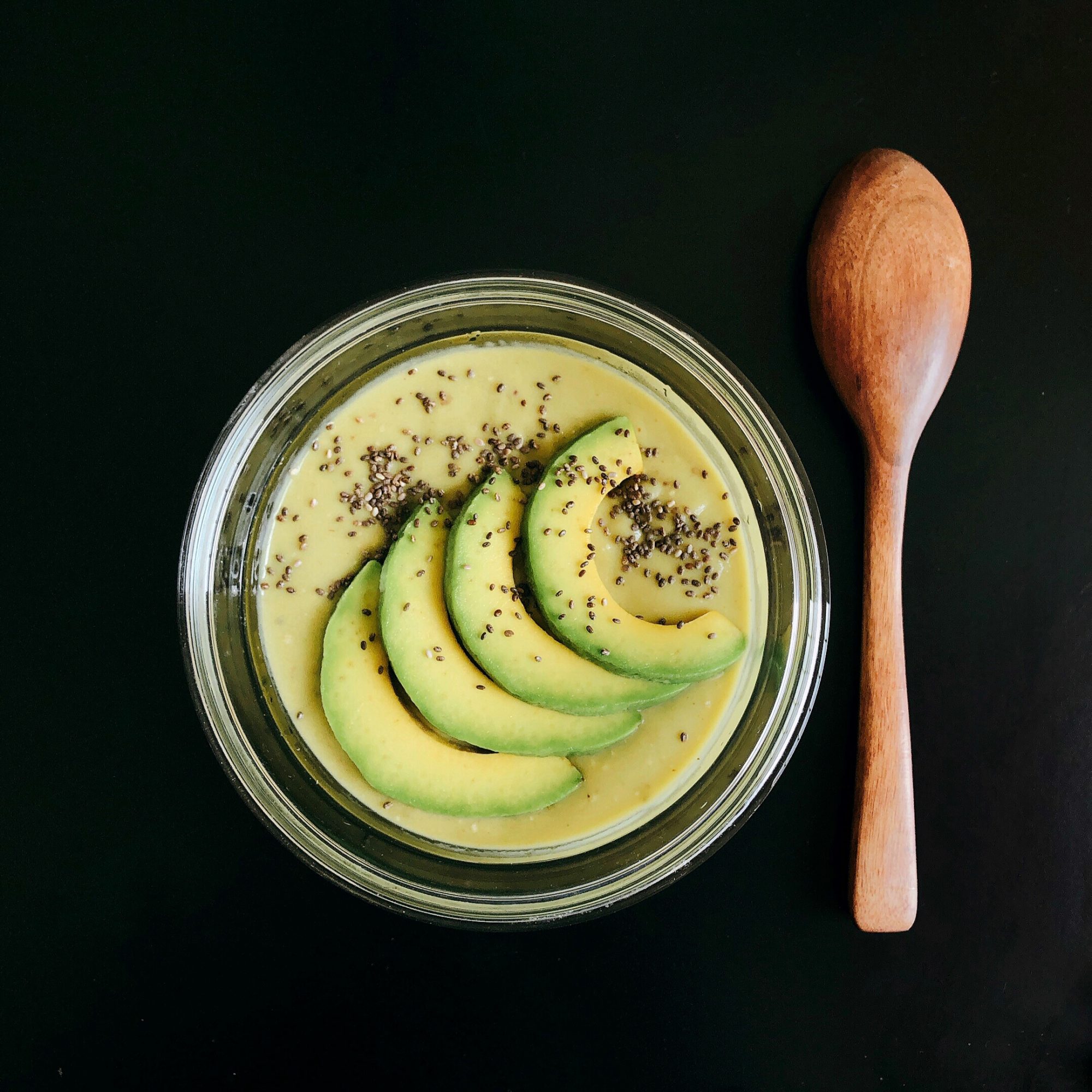 Sinh tố bơ – hạt chia (chỉ cho sữa không đường và một chút bơ đậu phộng).