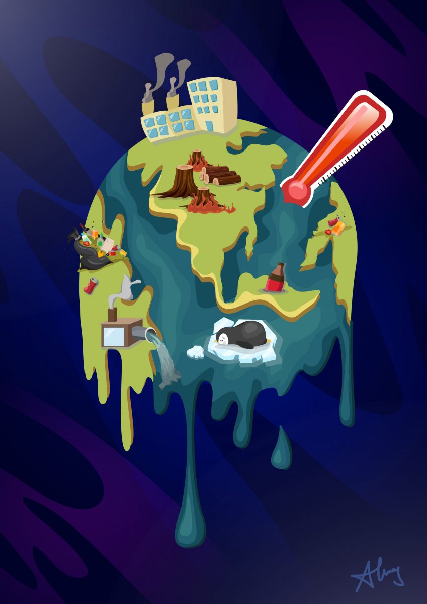 50 nhà khoa học hàng đầu trên thế giới đã cảnh báo hôm: Từ năm 2013 đến năm 2022, “sự nóng lên của Trái đất do con người gây ra đã gia tăng với tốc độ chưa từng thấy là hơn 0,2 độ C mỗi thập kỷ”. Tác phẩm thiết kế “Trái Đất đang nóng lên! Bạn đã biết chưa?” với tiêu đề có 2 vế đưa ra thông tin về sự nóng lên toàn cầu và câu hỏi “Bạn đã biết chưa?”. Tác phẩm đã trực tiếp cho thấy rất một số tác nhân đang ảnh hưởng trực tiếp và gián tiếp đến quá trình nóng lên toàn cầu. Chính đó sẽ là sự ảnh hưởng đến cuộc sống hàng ngày của chúng ta và còn là mối đe dọa lớn tới sự sống còn của Trái Đất trong tương lai. Vậy nên từ mỗi cá nhân đến những tập thể lớn hơn cần có các biện pháp mạnh mẽ nhằm ngăn chặn diễn biến tiêu cực này.