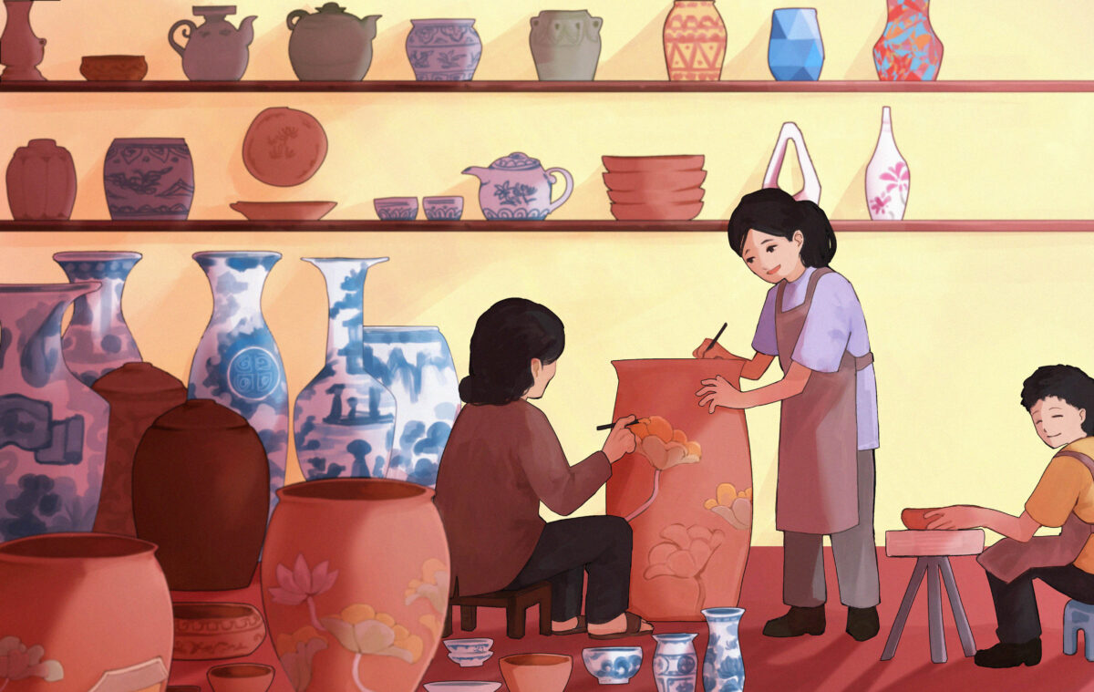 “Xưởng gốm thời gian” thể hiện sự phát triển của lịch sử làm gốm vốn đã tồn tại từ rất lâu, không chỉ tại làng gốm Bát Tràng mà cả lịch sử Việt Nam. Với kệ trưng bày những mẫu gốm từ nhiều thế kỉ trước đến những mẫu thiết kế gốm hiện đại, tác phẩm muốn thể hiện được sự thay đổi của gốm nói riêng và mỹ thuật nói chung. Mỗi sản phẩm gốm lại mang trong mình một câu chuyện độc đáo. Từ lịch sử cho đến hiện tại, mỗi thời kỳ thể hiện một phong cách khác nhau cũng như mang trong mình giá trị riêng biệt cần được quý trọng. Các thế hệ cùng chung tay gìn giữ truyền thống làm gốm cũng được thể hiện qua tác phẩm, và các bạn trẻ cũng đang cùng nhau tiếp bước với thế hệ trước để truyền thống làm gốm được tiếp tục phát triển hơn nữa. Thông qua tác phẩm này, mình muốn thể hiện sự ngưỡng mộ và mong muốn truyền bá hơn nữa truyền thống làm gốm cũng như lịch sử mỹ thuật Việt Nam, những yếu tố đã luôn có sức ảnh hưởng không nhỏ với xã hội Việt Nam hiện đại.