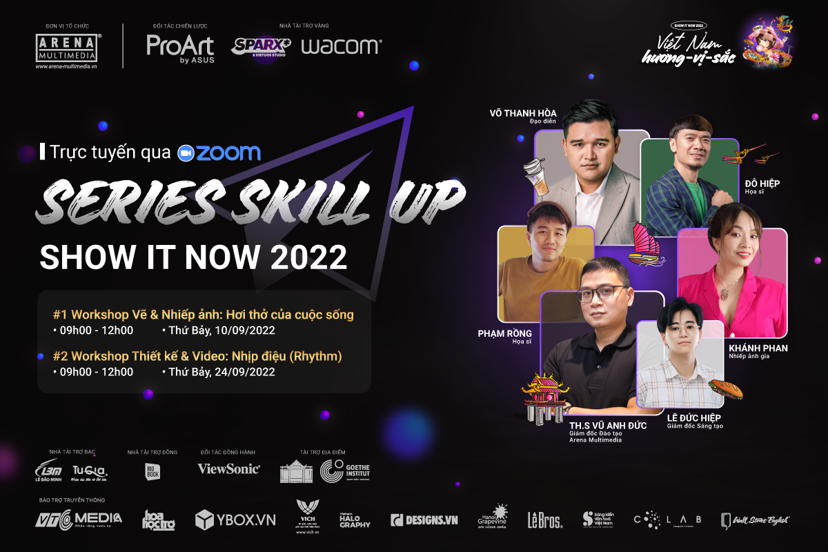 Cũng nằm trong khuôn khổ cuộc thi Show It NOW 2022, sau sự kiện Inspiration Day, Series Skill Up cùng Show It NOW 2022 – Chuỗi hoạt động nâng cấp kỹ năng thuộc khuôn khổ cuộc thi Show It NOW do Arena Multimedia tổ chức sẽ quay trở lại và được diễn ra trong hai ngày 10/9 và 24/9. Với 2 Workshop riêng biệt có chủ đề bao quát bốn hạng mục: Vẽ – Nhiếp ảnh – Thiết kế – Video, được chia sẻ bởi dàn ban giám khảo cực chất của cuộc thi, sự kiện chắc chắn sẽ cung cấp nhiều kiến thức bổ ích đồng thời, mang đến nhiều trải nghiệm cảm xúc mới mẻ cho các thí sinh tham gia cuộc thi nói riêng và các bạn trẻ yêu thích Mỹ thuật Đa phương tiện nói chung. Đừng bỏ lỡ nhé!