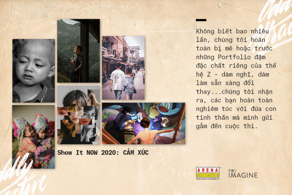 Không biết bao nhiêu lần, chúng tôi hoàn toàn bị mê hoặc trước những Portfolio đậm đặc chất riêng của thế hệ Z - dám nghĩ, dám làm - sẵn sàng đổi thay.Các bức ảnh chụp lạinhững đứa bé dân tộc, vài nét vẽ khắc họa ký ức tuổi thơ trong sáng, vài thước phim thu lấy trọn vẹn quang cảnh thành phố lúc hoàng hôn cũng đủ khiến đội ngũ Show It NOW không thể rời mắt. Đó là lúc chúng tôi nhận ra, các bạn hoàn toàn nghiêm túc với đứa con tinh thần mà mình gửi gắm đến cuộc thi.