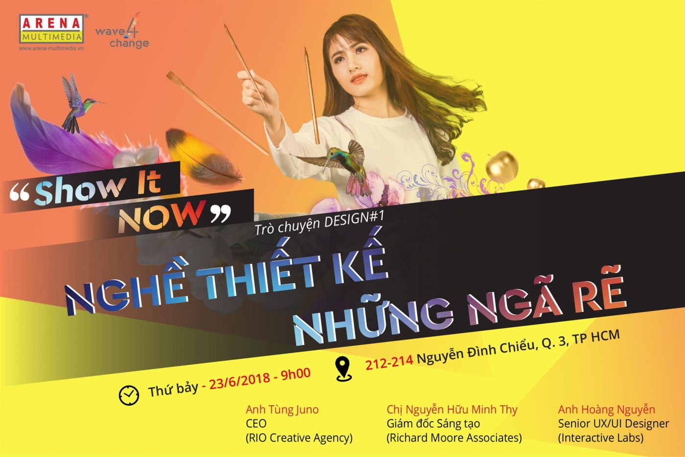 Nằm trong khuôn khổ chương trình Show It NOW, Arena Multimedia tổ chức chuỗi talkshow này dành cho các bạn trẻ tham gia gửi tác phẩm trưng bày, cũng như những người bạn có cùng đam mê về thiết kế – làm phim – games – hoạt hình 3D.